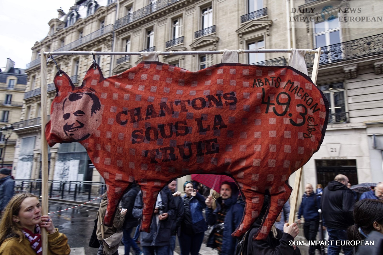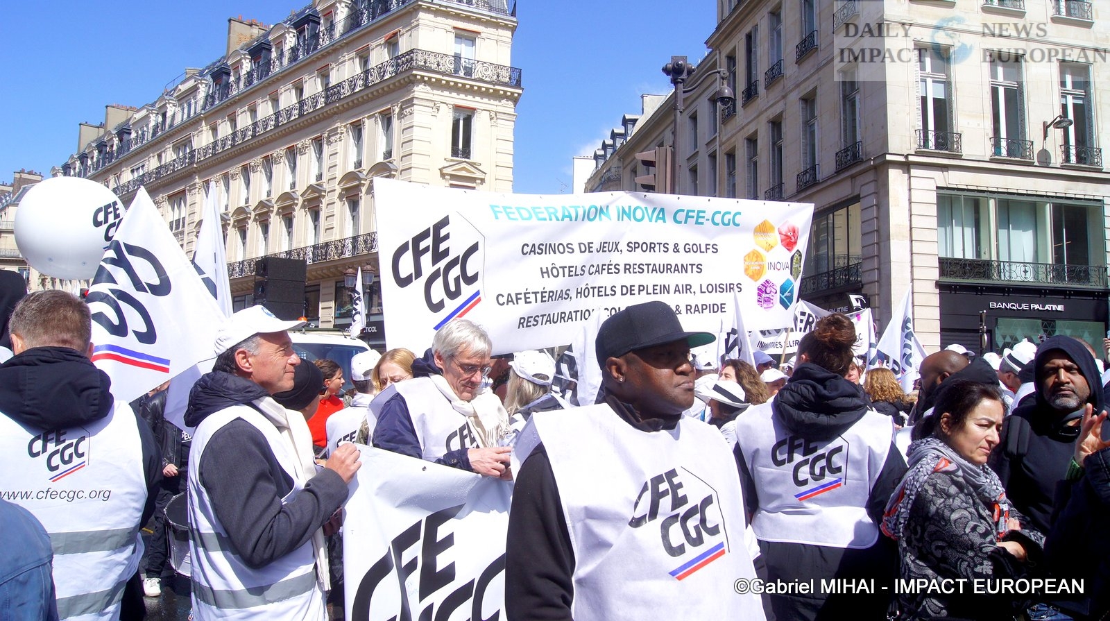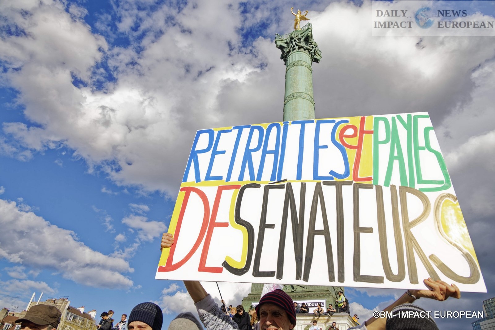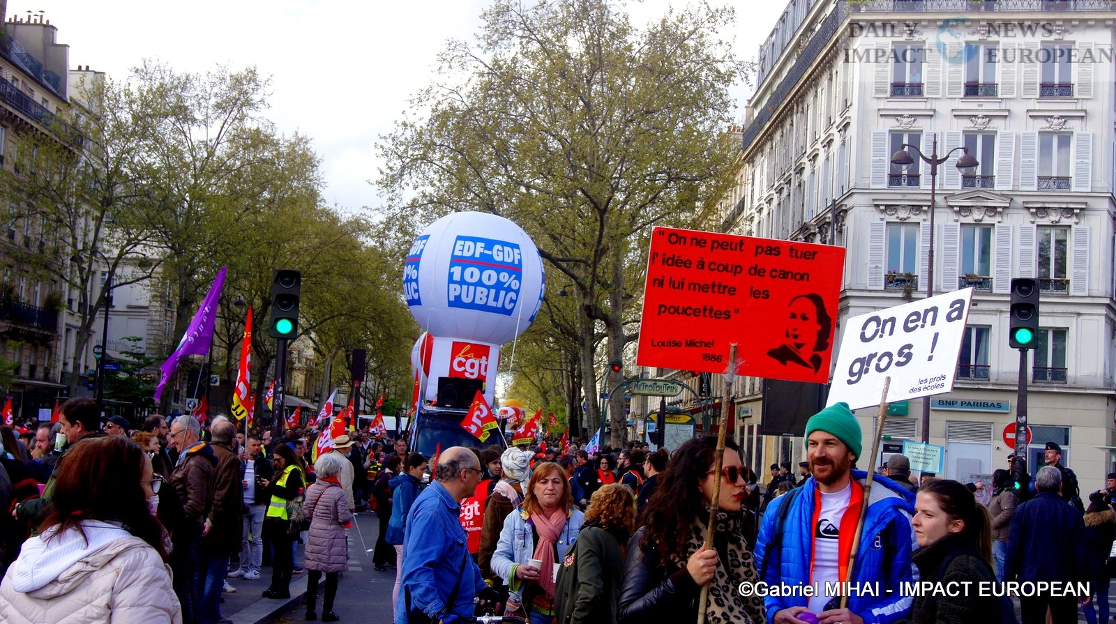The procession of the Parisian demonstration, arrived for 30 minutes, on the place of the Bastille, of great tensions between a part of the demonstrators and the police are to be deplored. The police are notably positioned near the Banque de France to protect the building.