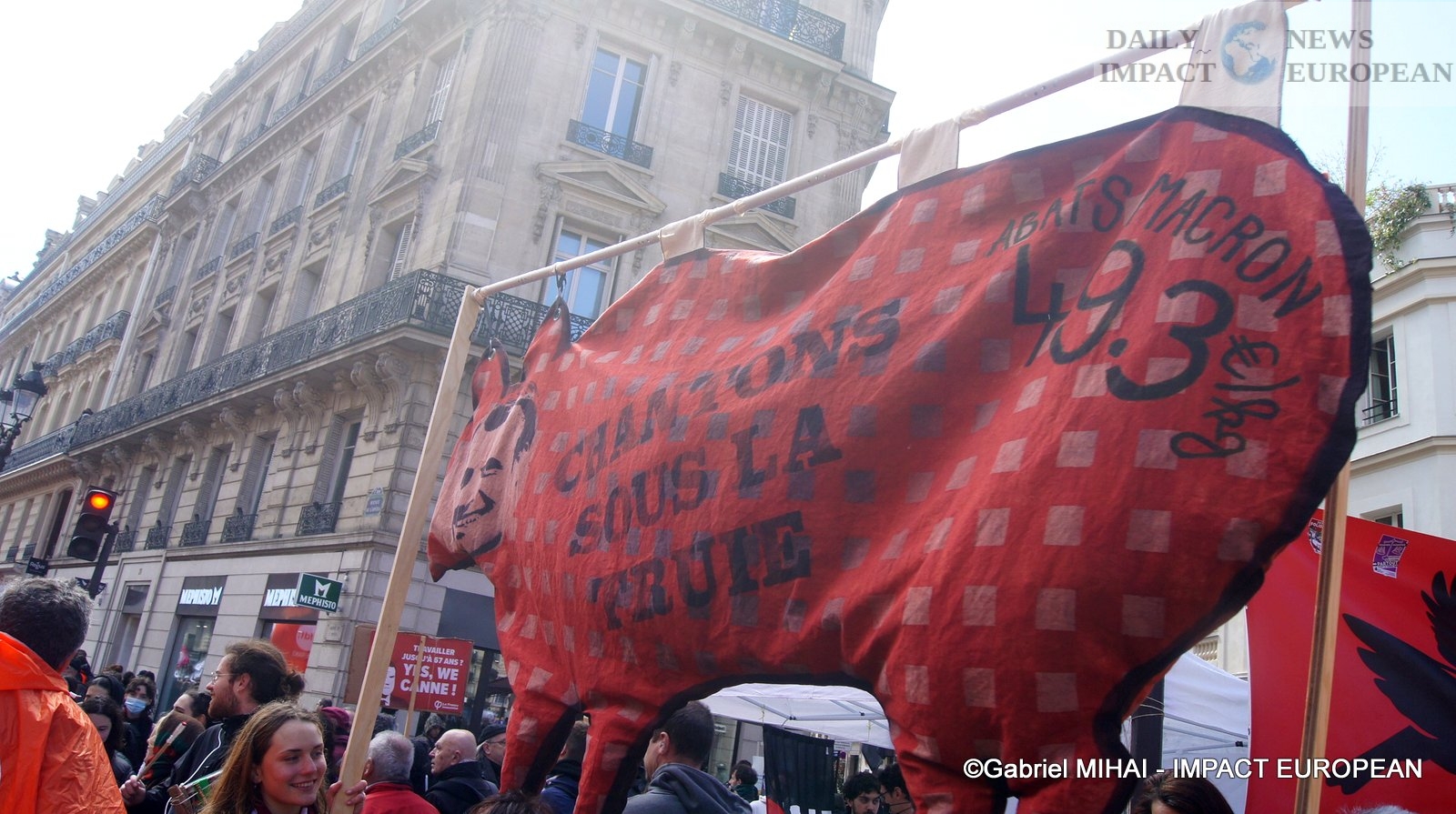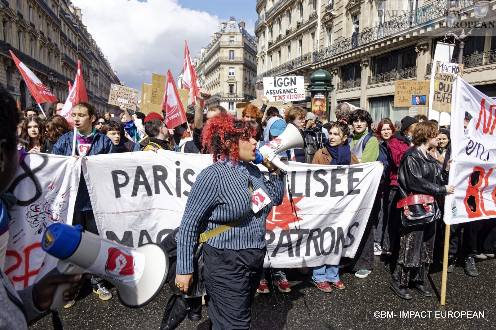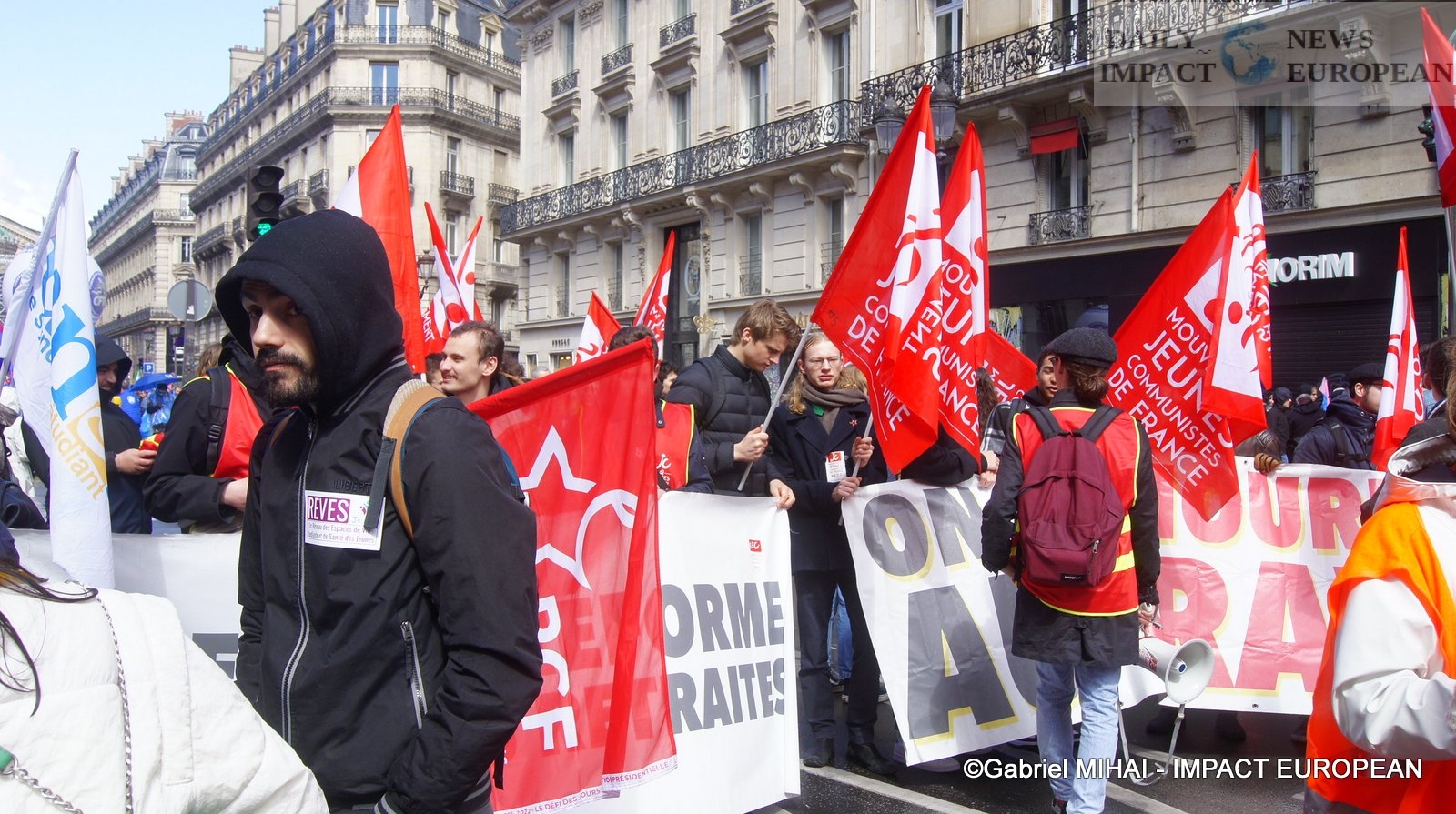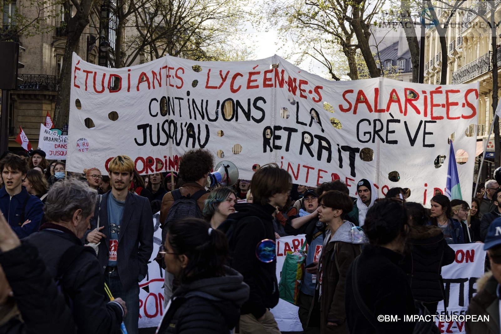 As the rain begins to fall, avenue de l’Opéra, the interface is ready. This time placed at the head of the procession, the young people organize themselves and sing – « Angry students, they’re fed up with the galley » – to try to motivate the troops. At 2:30 p.m., the sun has returned, the march finally begins. “We will go as far as withdrawal, that’s for sure”, slips a student, activist at the Raised Fist. « Constitutional or not, we don’t want this law, » sing the students.