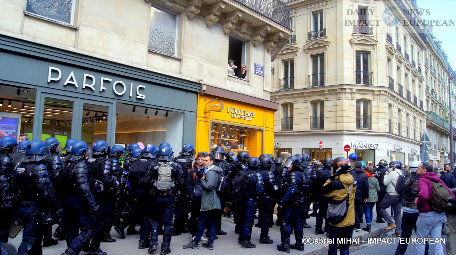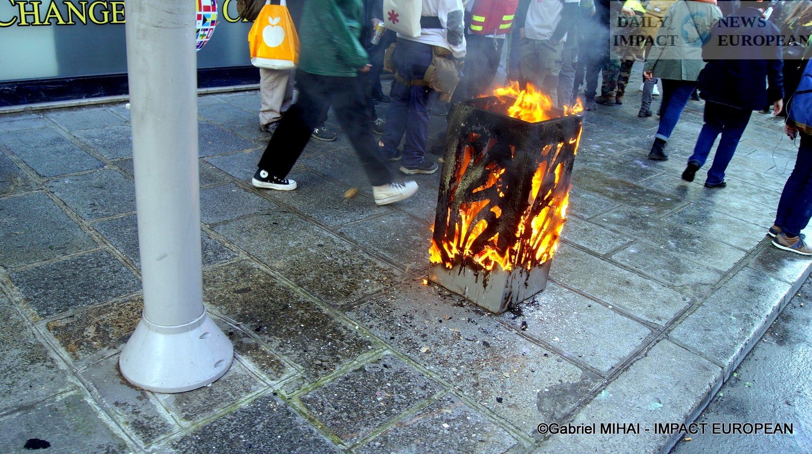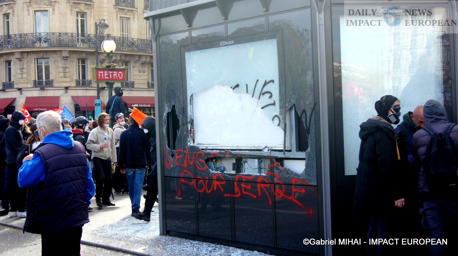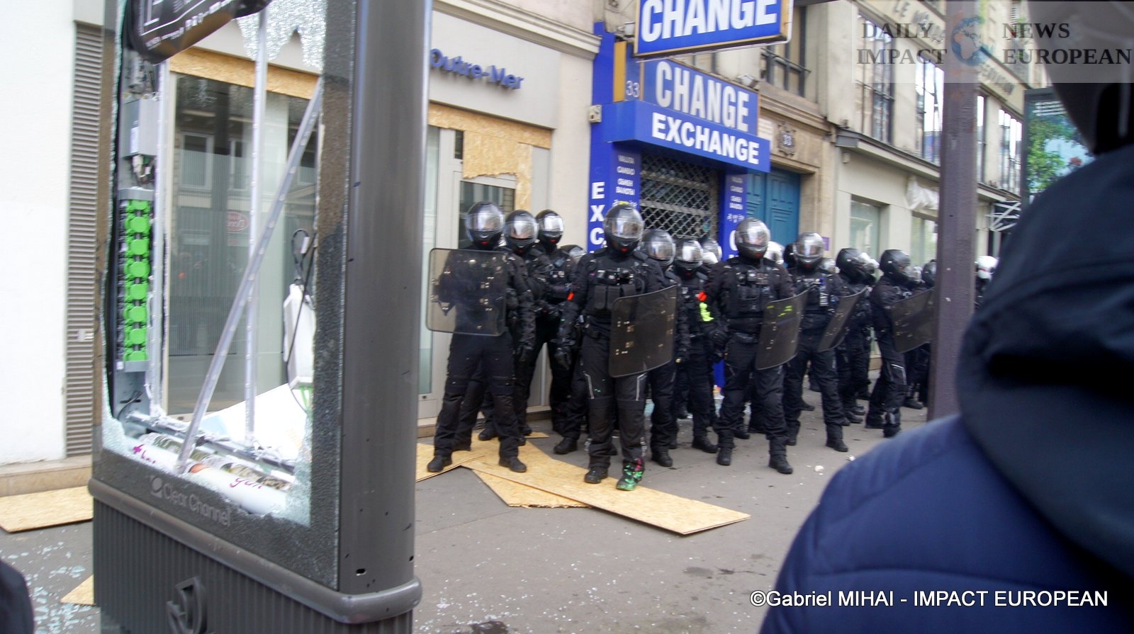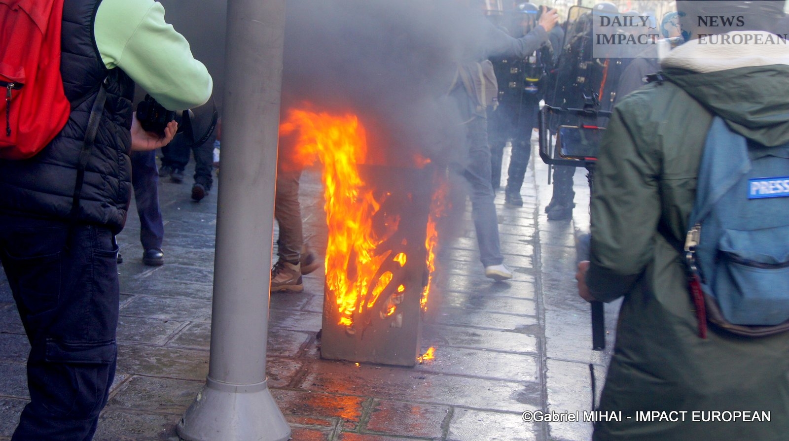 For 40 minutes, there were clashes between demonstrators and the police, place de la Bastille, where the flower vases in front of the French bank were destroyed as well as the newsstand. Bottles, rocks and hard objects were thrown at the police. At the same time, the security forces attacked the group of demonstrators arriving and forced them to stand in Place de la Bastille, beating them with truncheons for no reason.