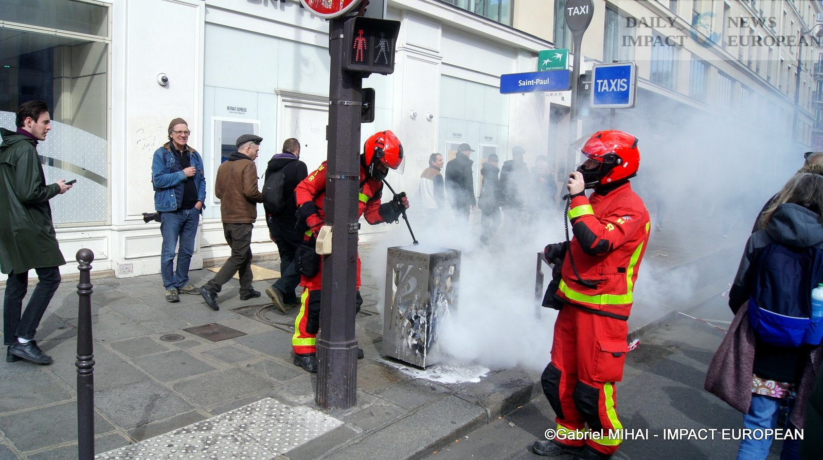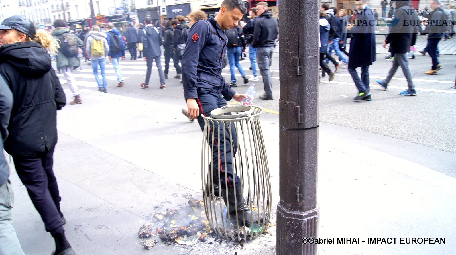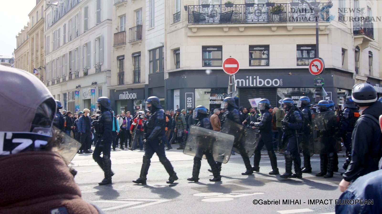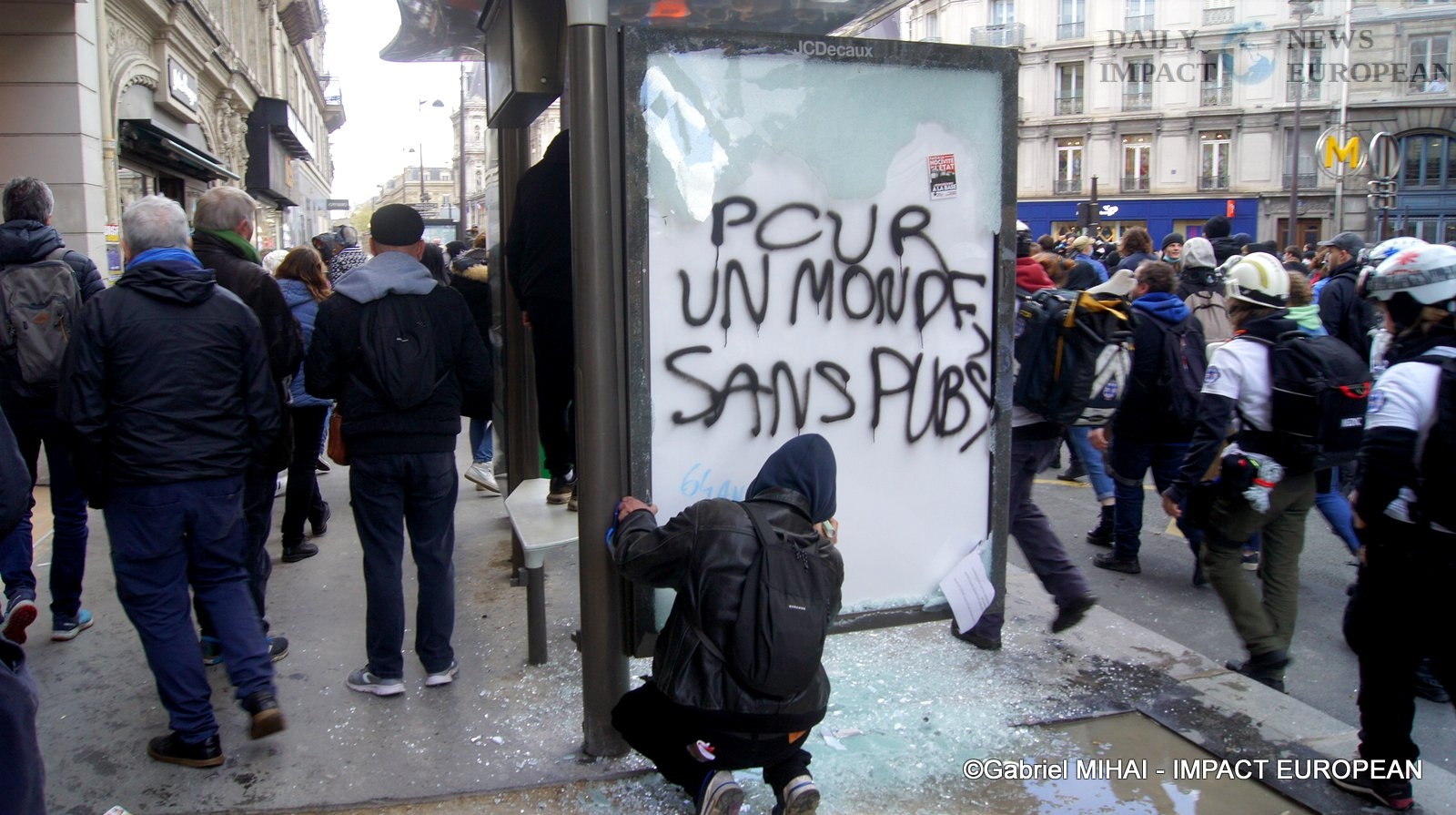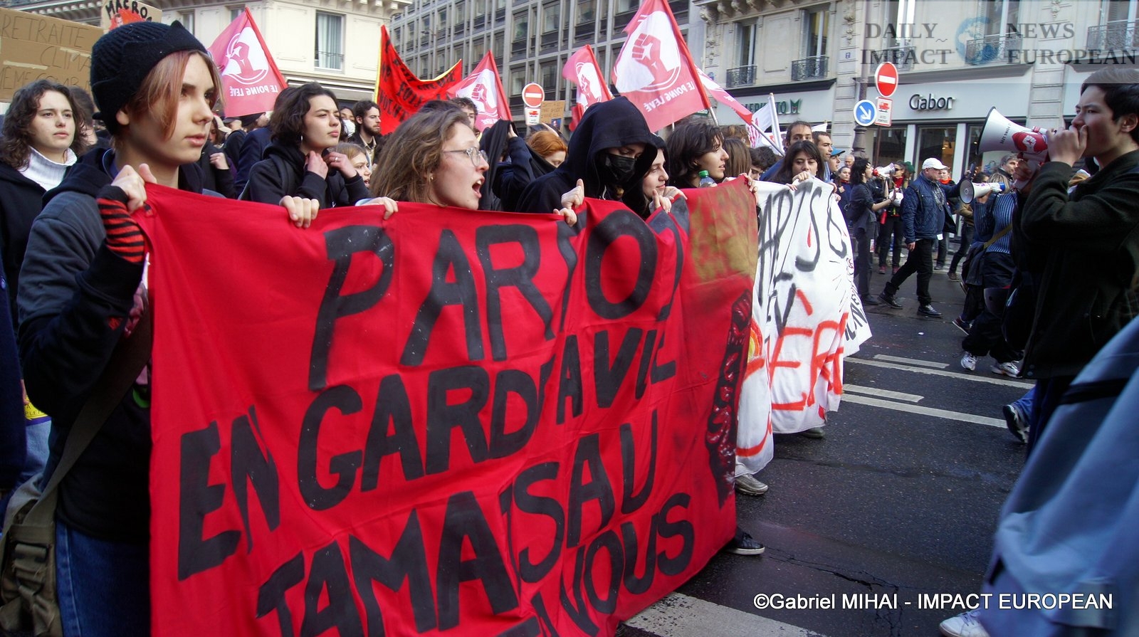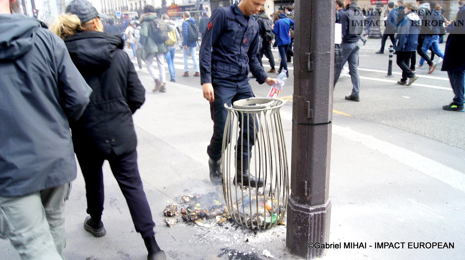 For 40 minutes, there were clashes between demonstrators and the police, place de la Bastille, where the flower vases in front of the French bank were destroyed as well as the newsstand. Bottles, rocks and hard objects were thrown at the police. At the same time, the security forces attacked the group of demonstrators arriving and forced them to stand in Place de la Bastille, beating them with truncheons for no reason.