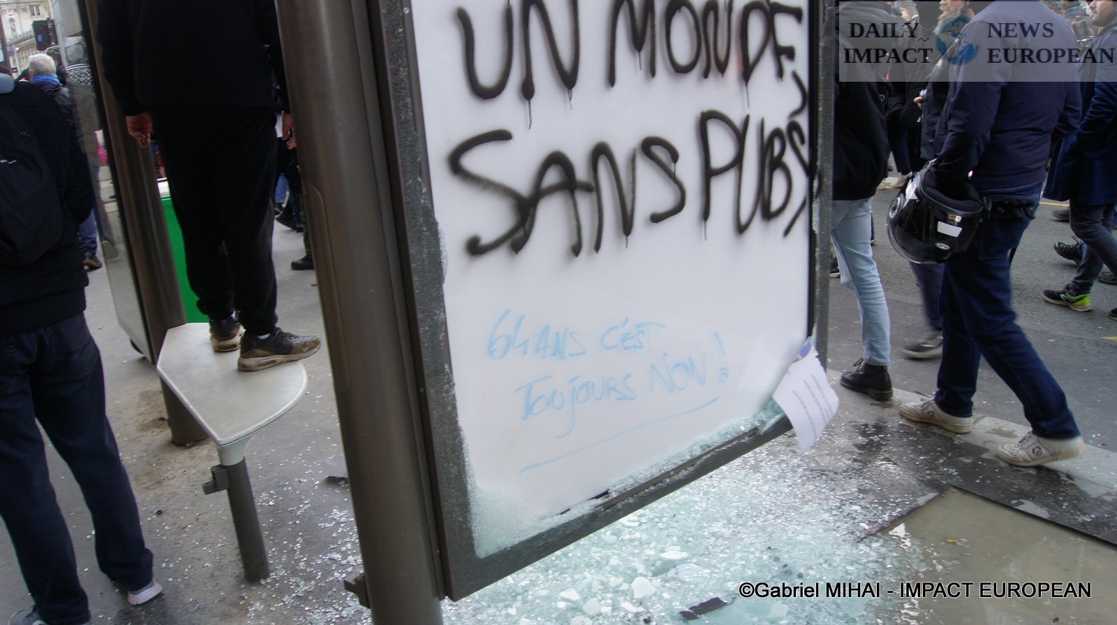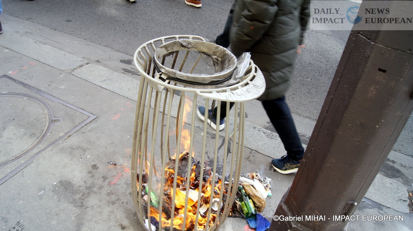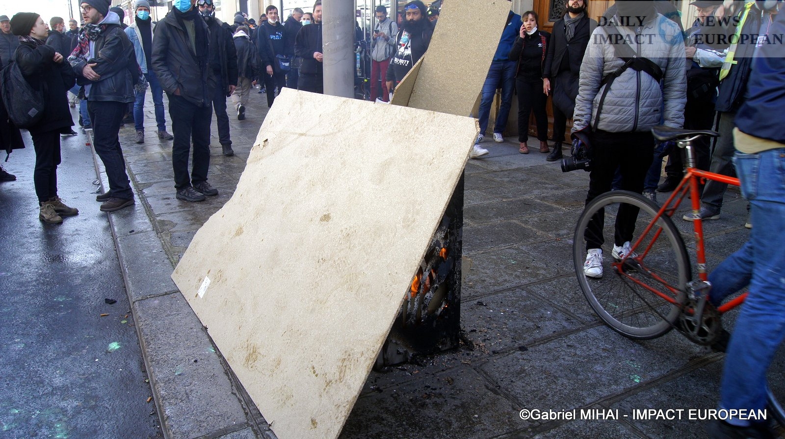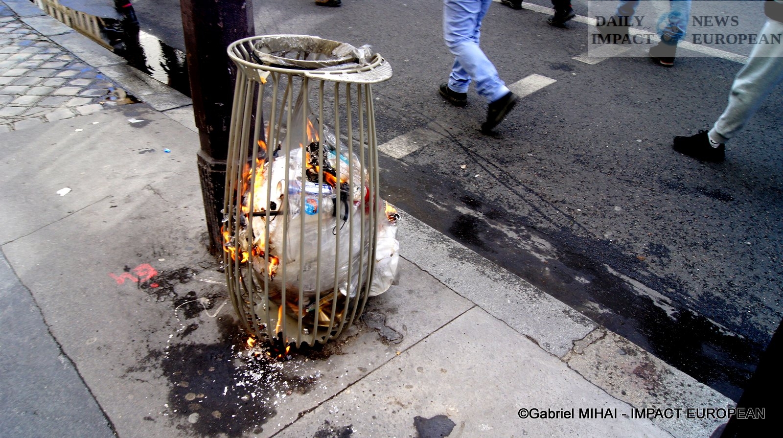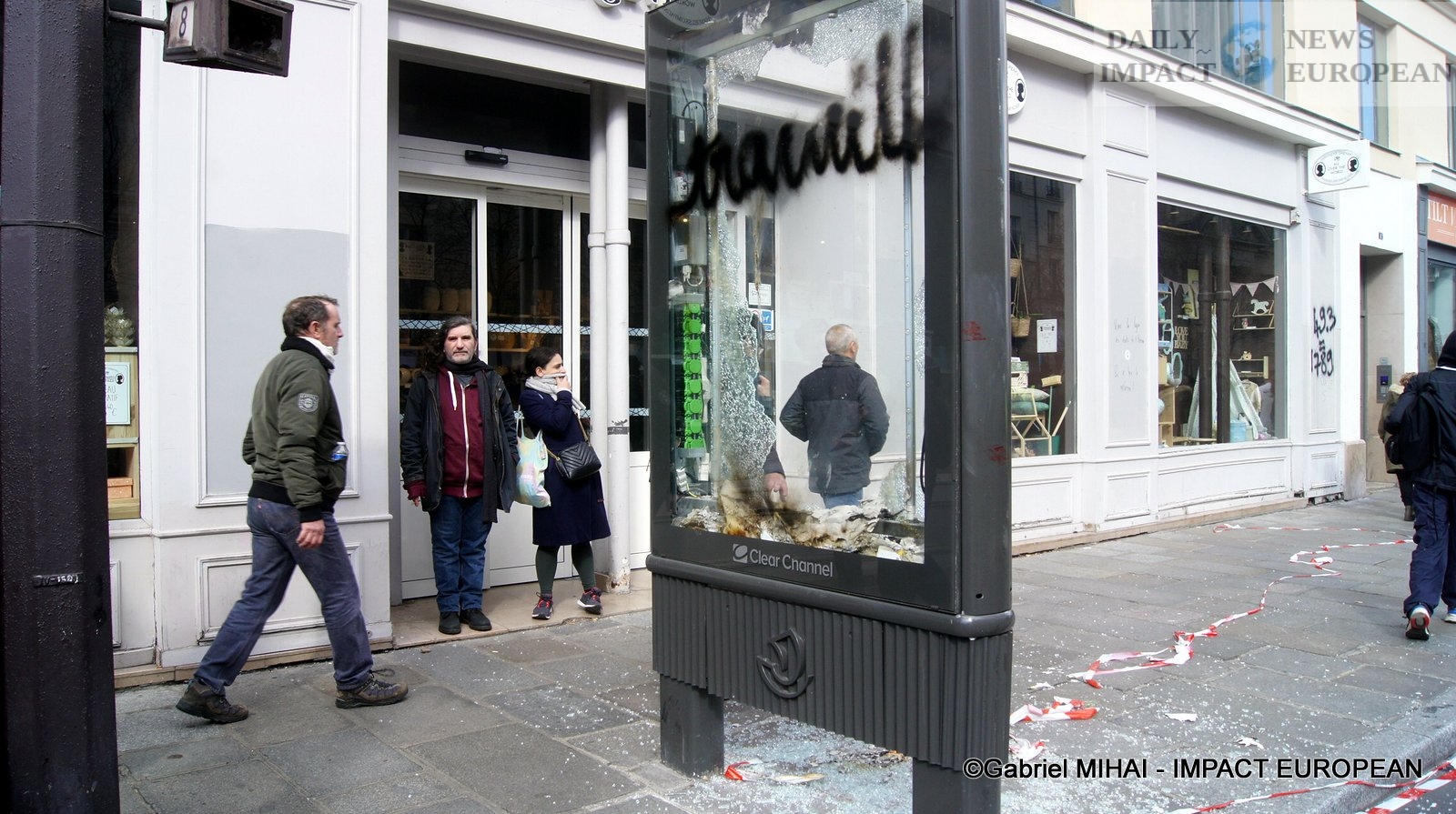 For 40 minutes, there were clashes between demonstrators and the police, place de la Bastille, where the flower vases in front of the French bank were destroyed as well as the newsstand. Bottles, rocks and hard objects were thrown at the police. At the same time, the security forces attacked the group of demonstrators arriving and forced them to stand in Place de la Bastille, beating them with truncheons for no reason.