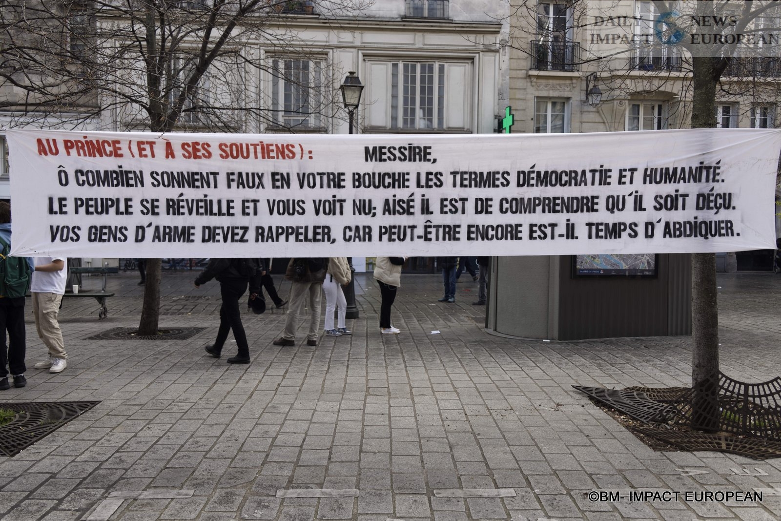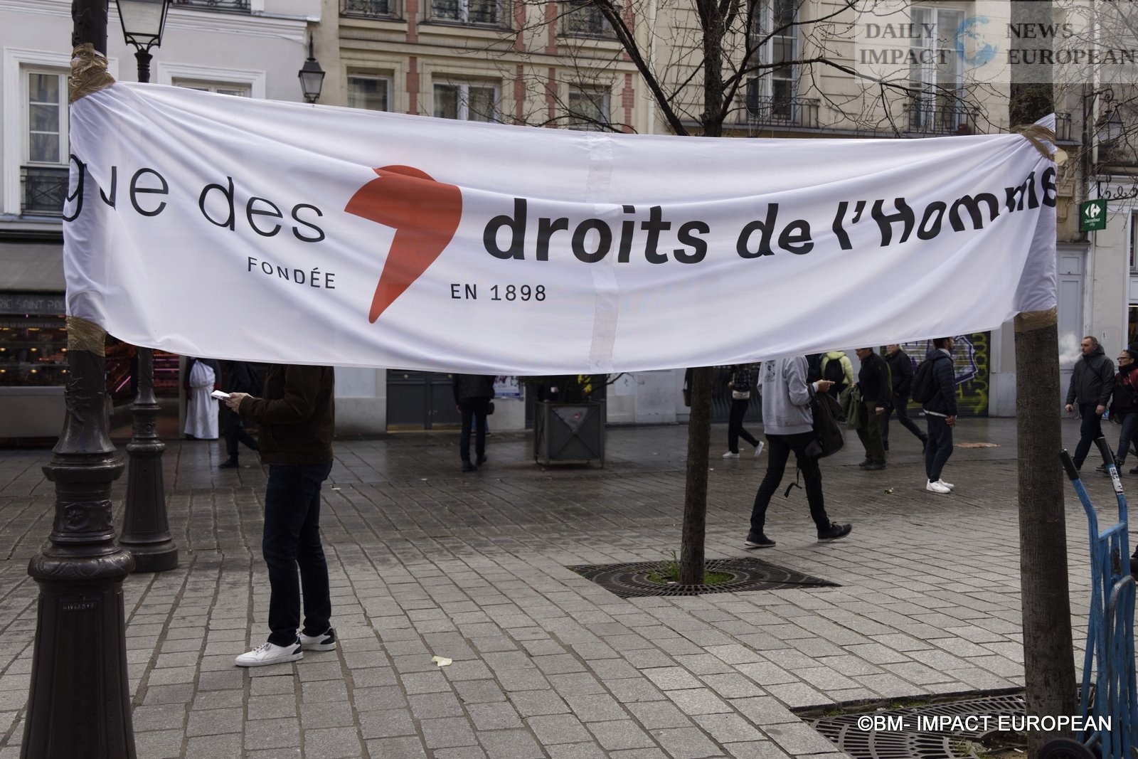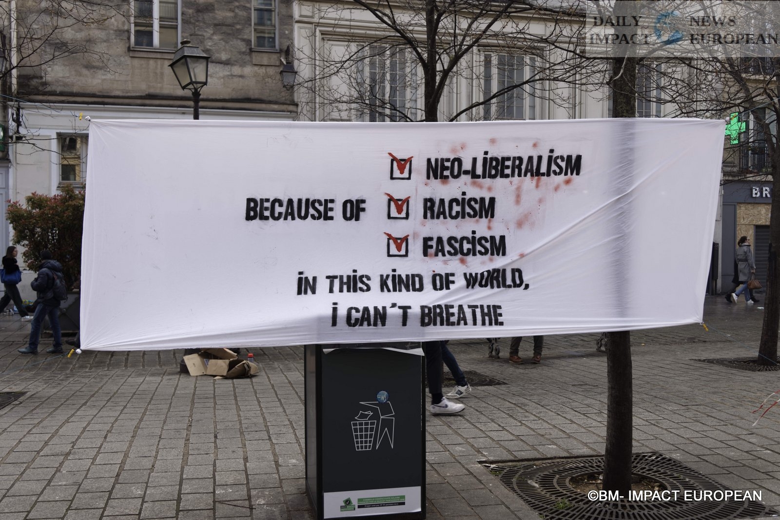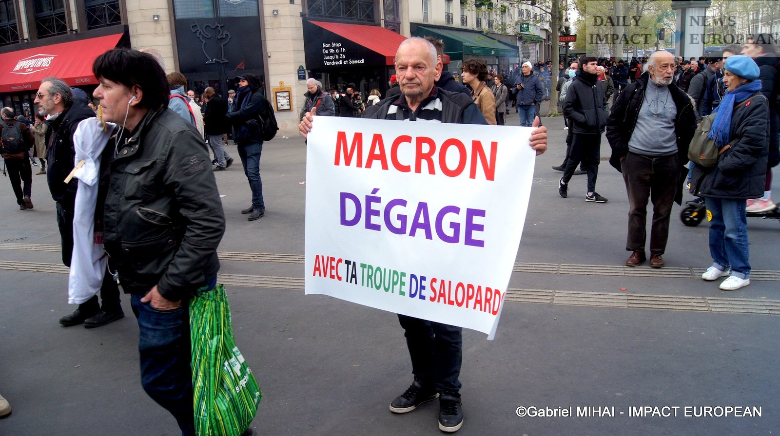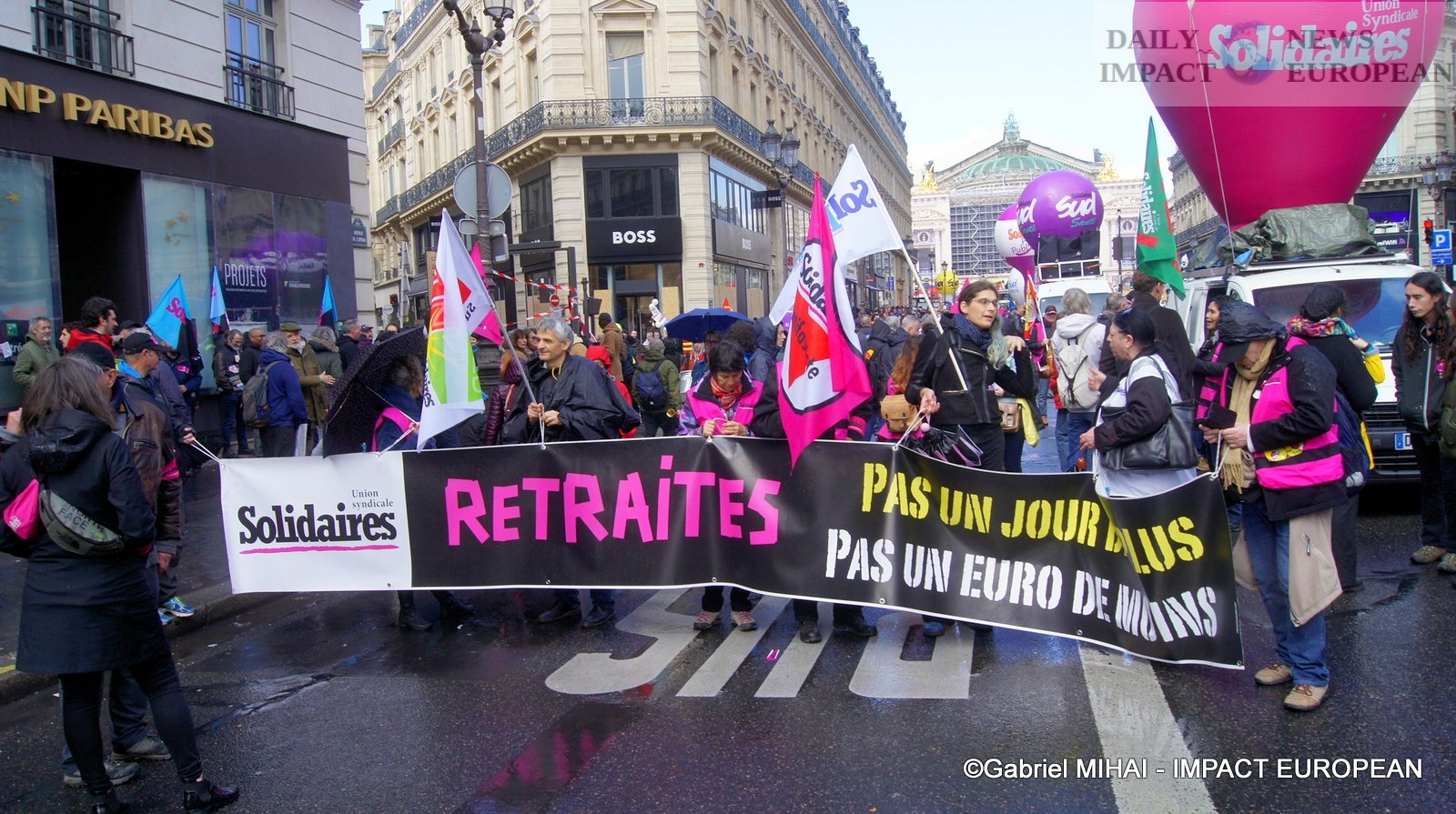 For 40 minutes, there were clashes between demonstrators and the police, place de la Bastille, where the flower vases in front of the French bank were destroyed as well as the newsstand. Bottles, rocks and hard objects were thrown at the police. At the same time, the security forces attacked the group of demonstrators arriving and forced them to stand in Place de la Bastille, beating them with truncheons for no reason.