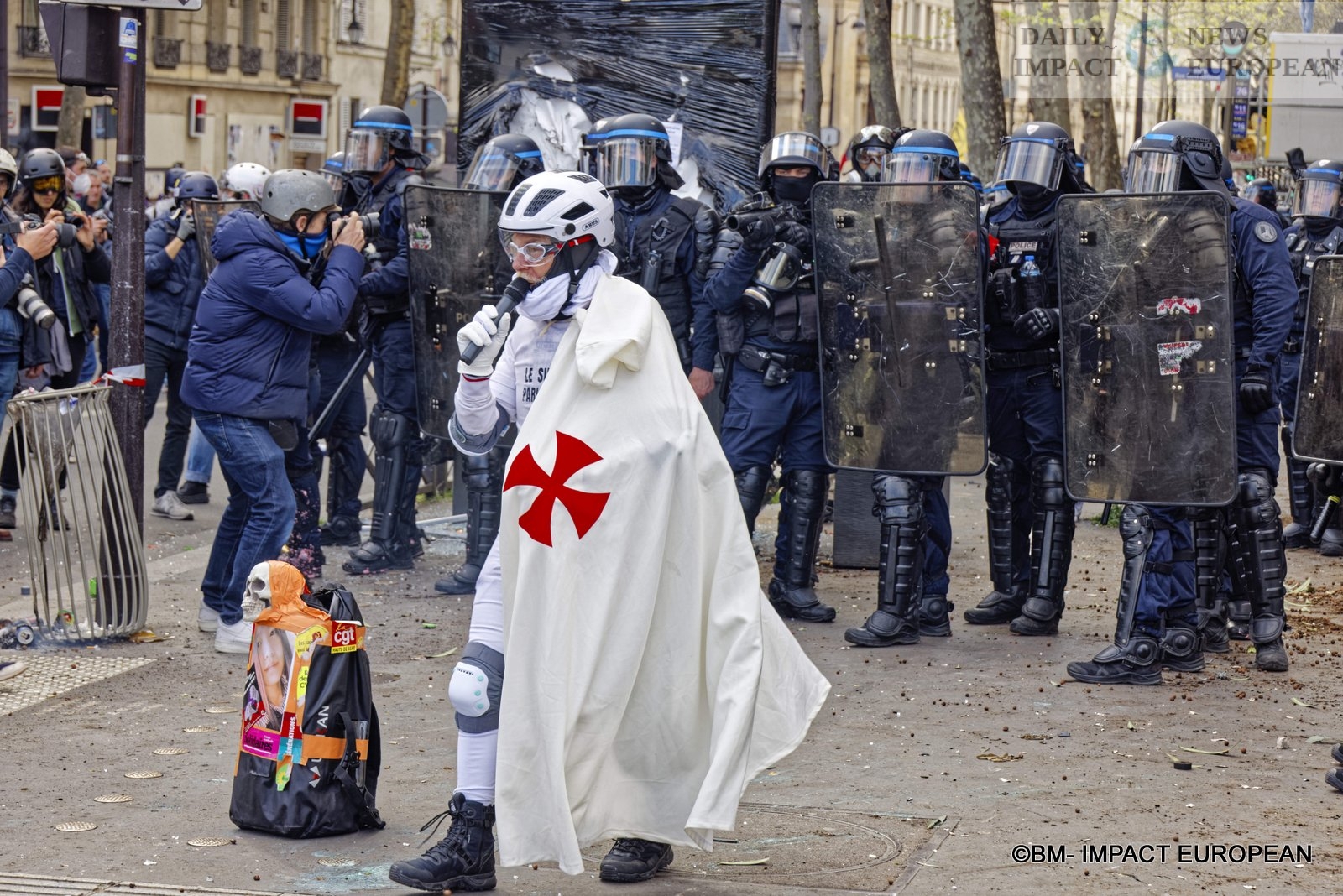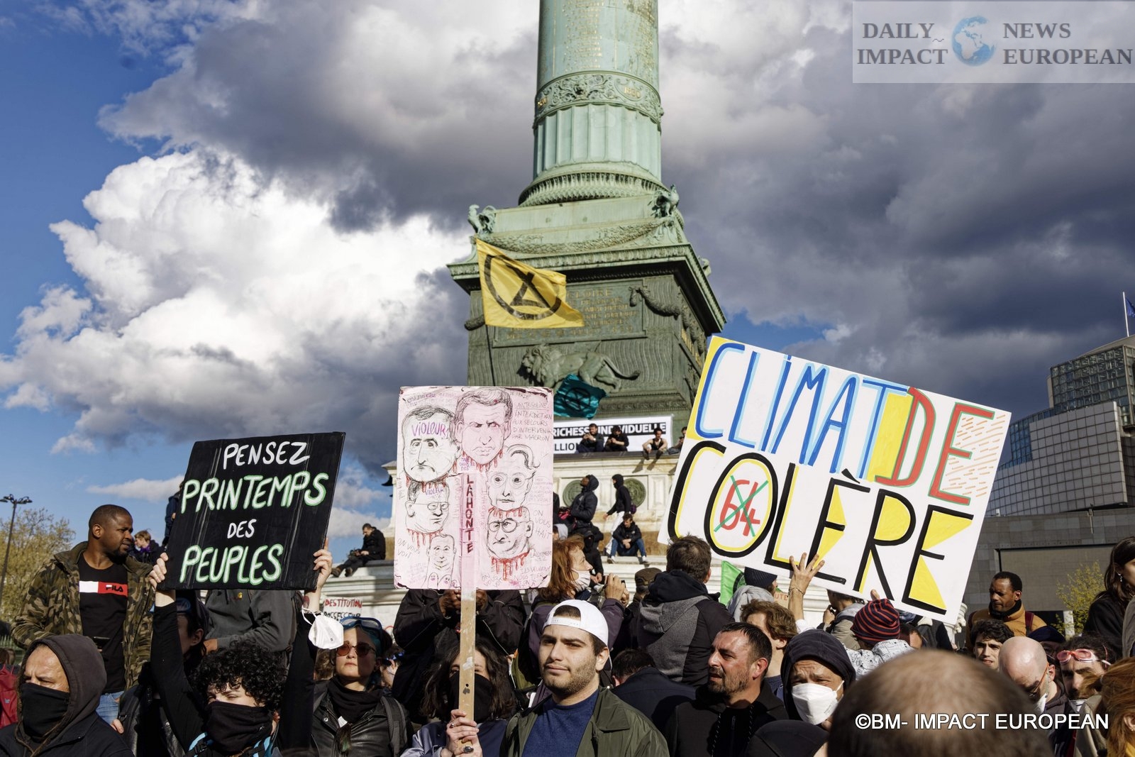 From all corners of the Place de la Bastille, we could see the assaults of the police, as well as the use of tear gas all over the square, the air unbreathable because the substances were much stronger than during the last demonstration of April 6.