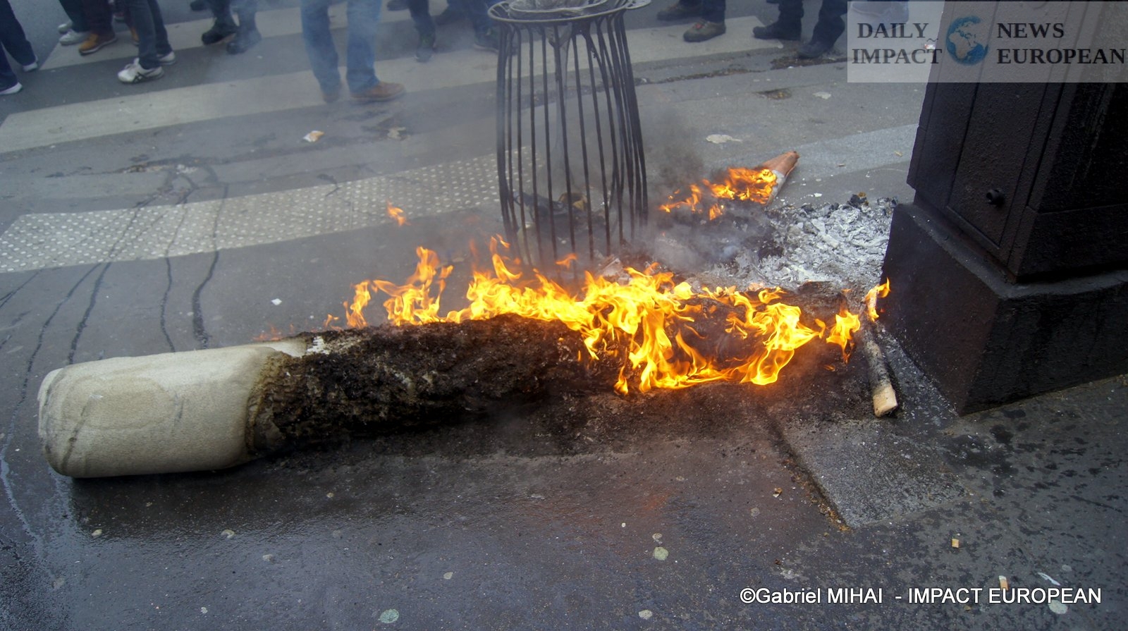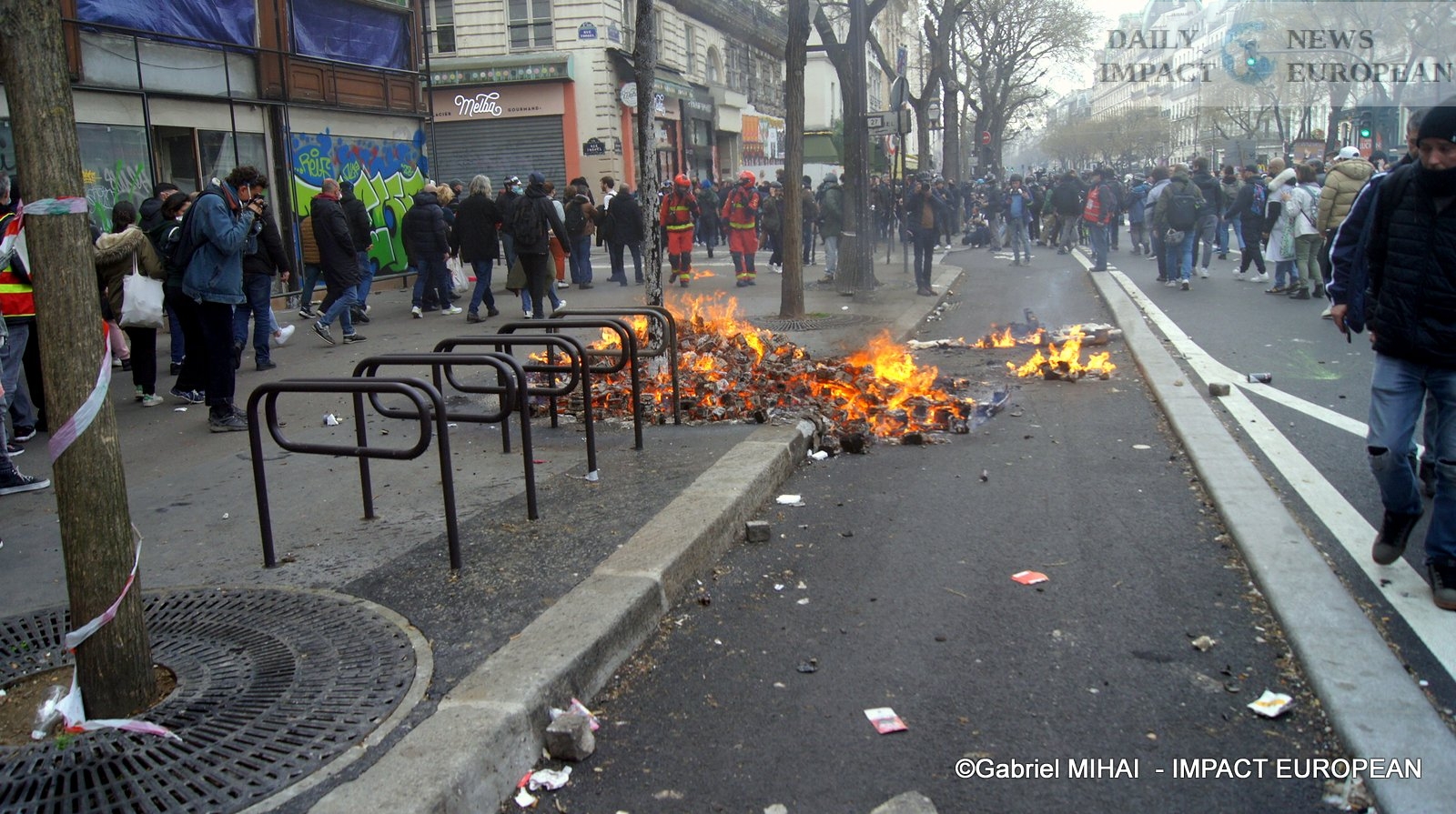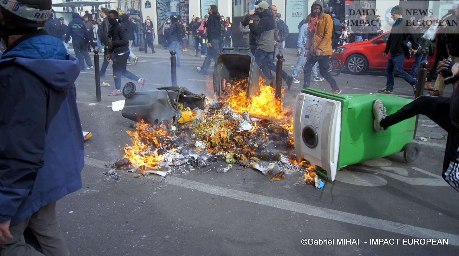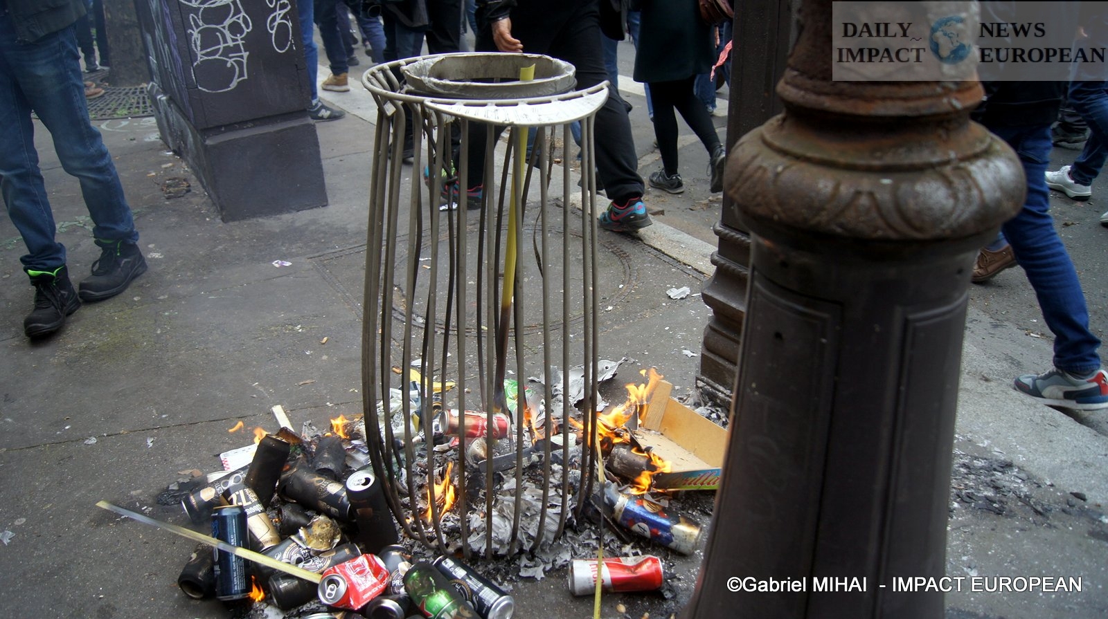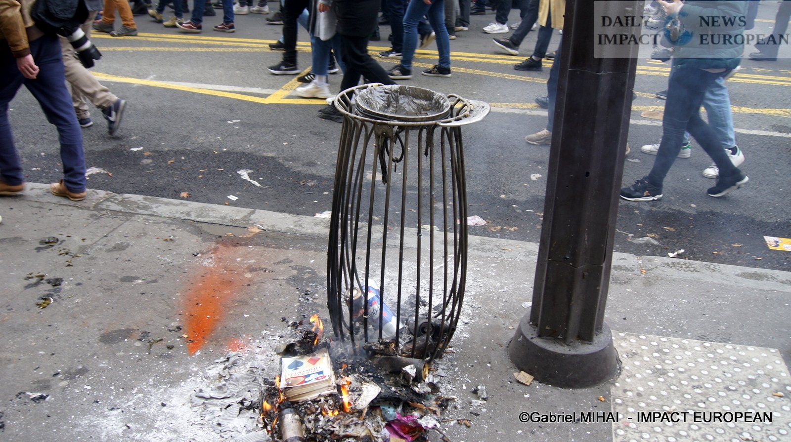 The Place de l’Opéra has emptied, but tensions and damage are observed in the adjacent streets. According to journalists on the spot, garbage cans mounted in barricades are set on fire everywhere, while thousands of demonstrators head for the Place de la République.