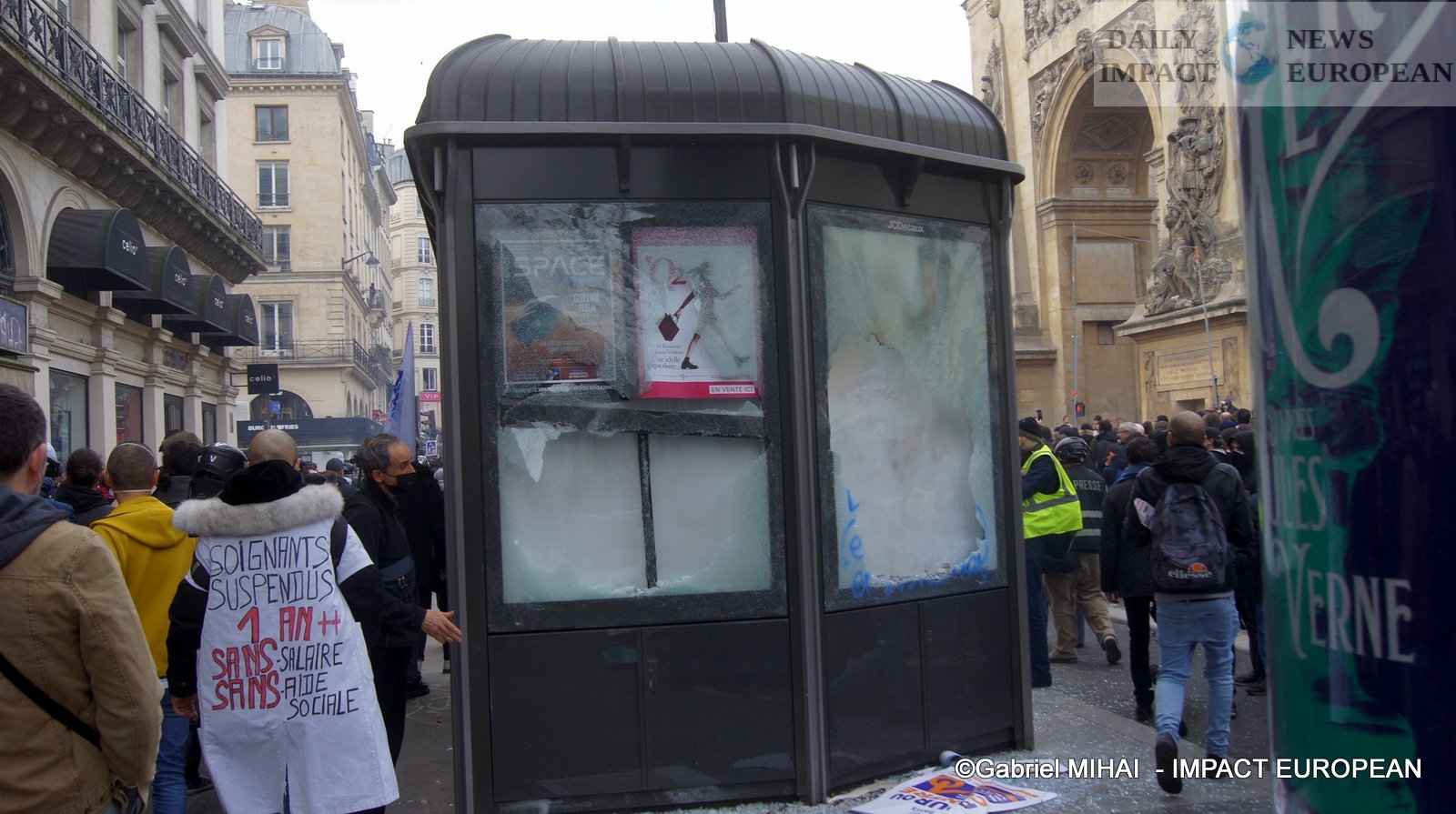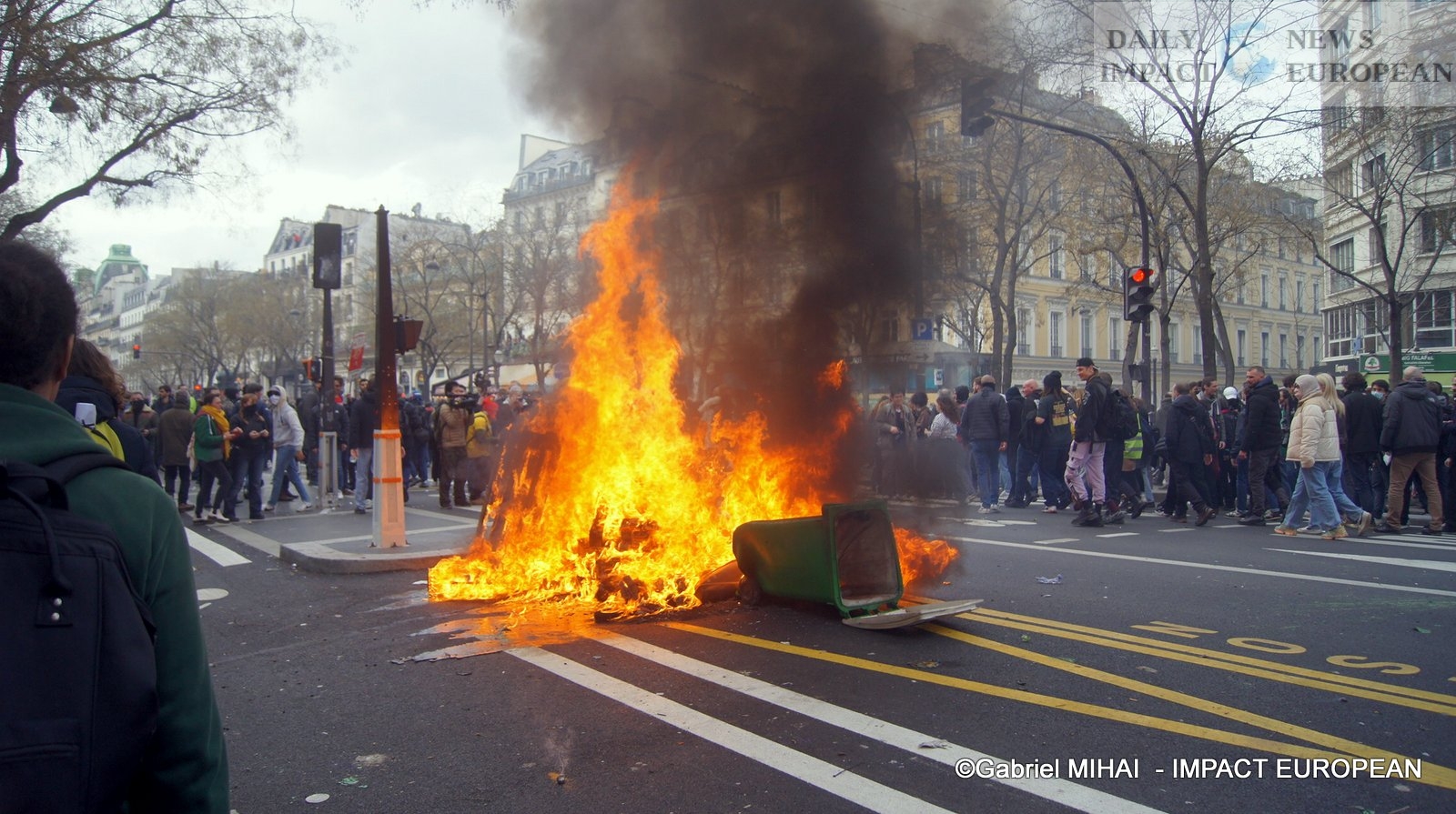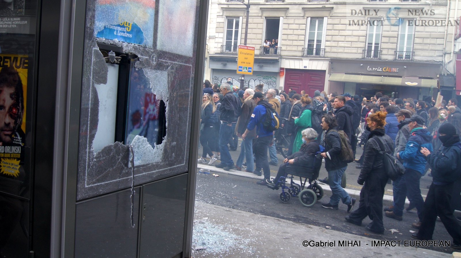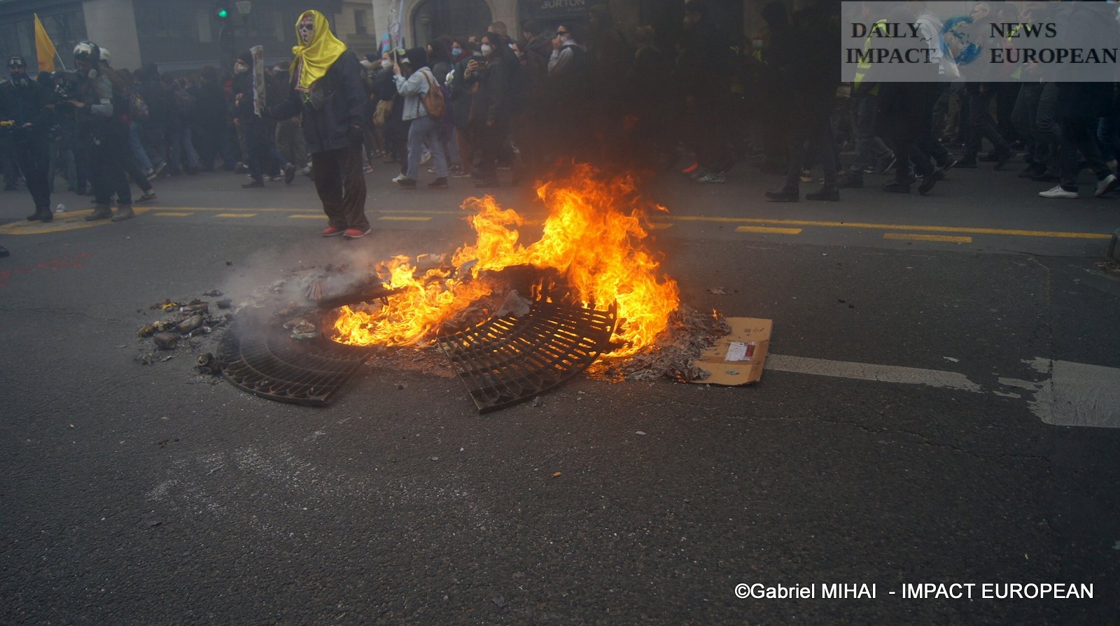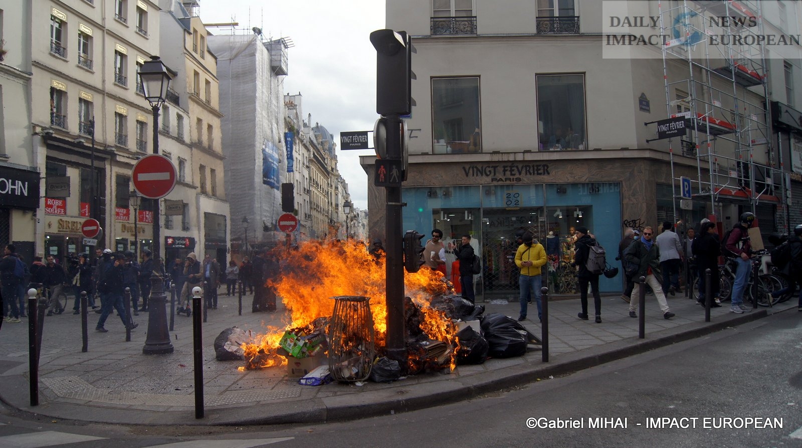 The Place de l’Opéra has emptied, but tensions and damage are observed in the adjacent streets. According to journalists on the spot, garbage cans mounted in barricades are set on fire everywhere, while thousands of demonstrators head for the Place de la République.