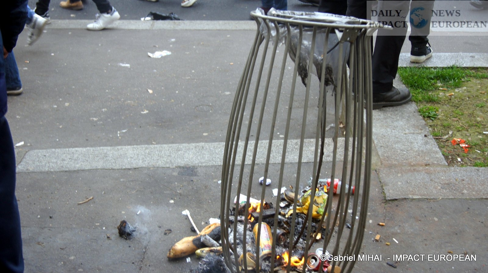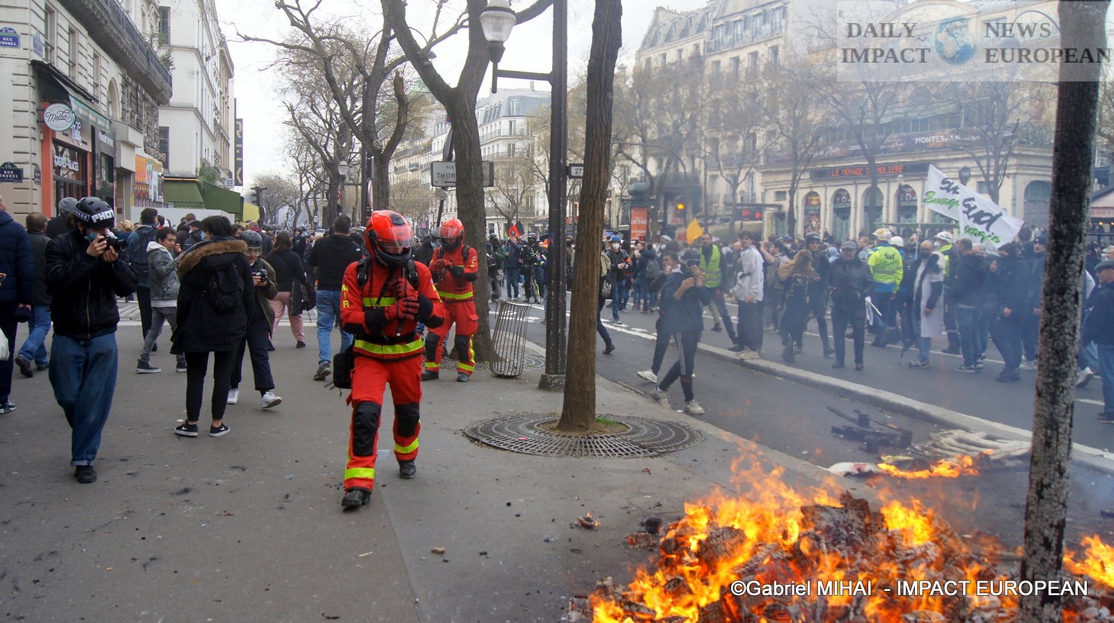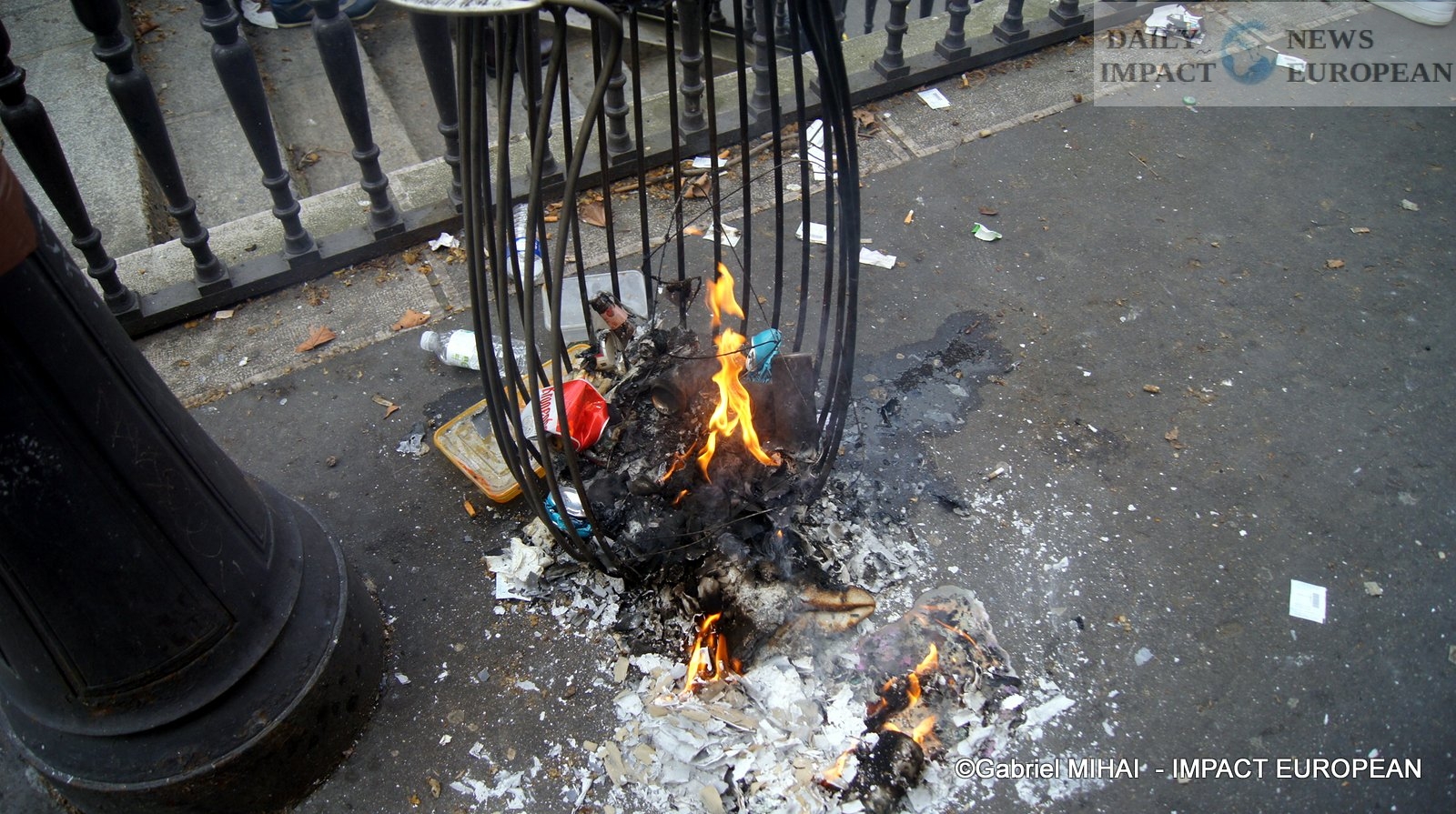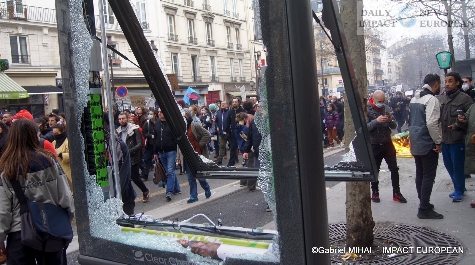 The Place de l’Opéra has emptied, but tensions and damage are observed in the adjacent streets. According to journalists on the spot, garbage cans mounted in barricades are set on fire everywhere, while thousands of demonstrators head for the Place de la République.