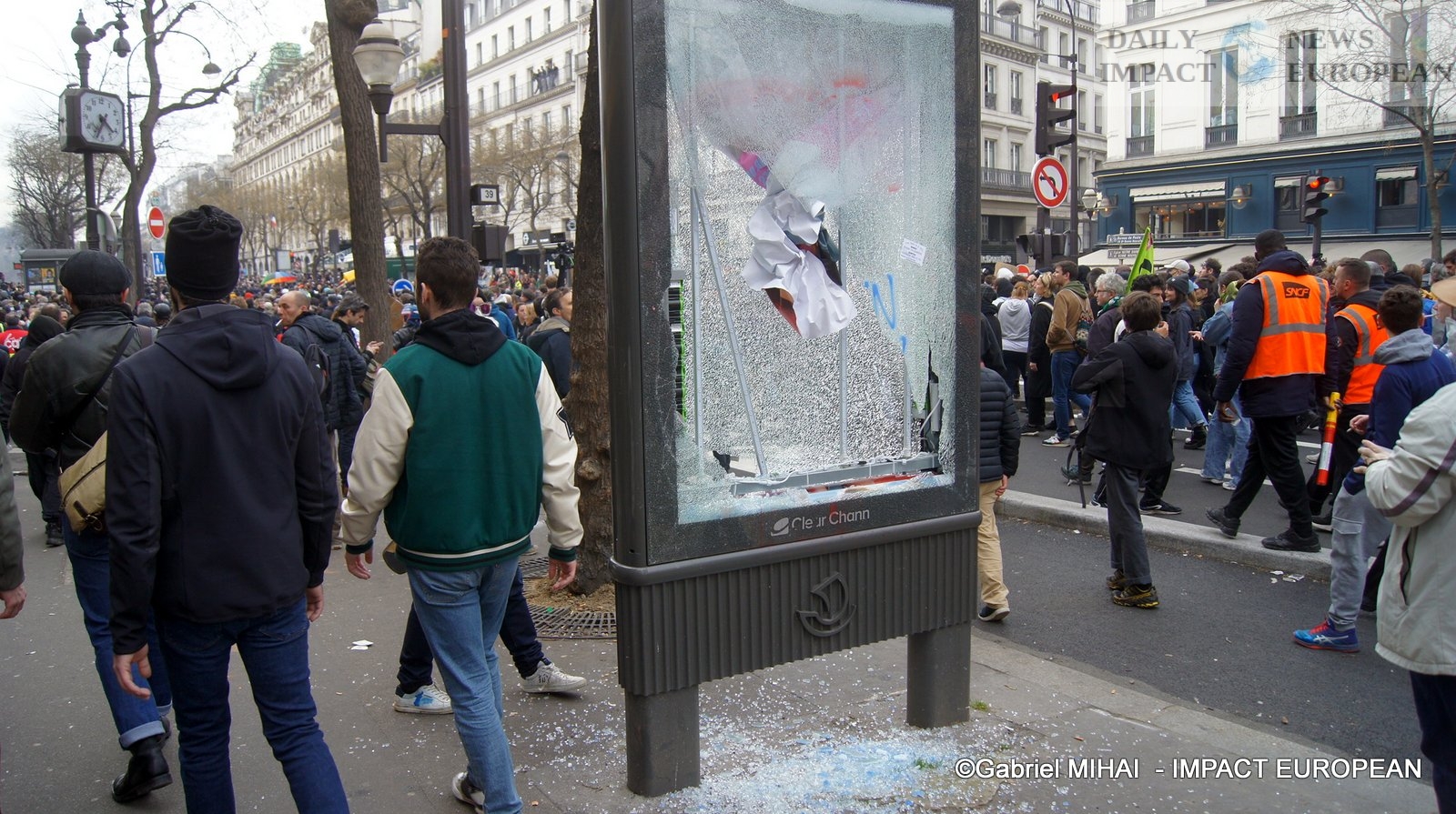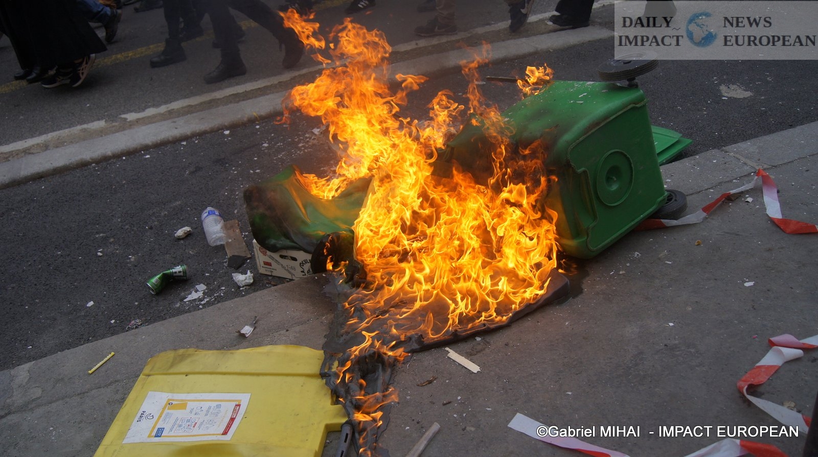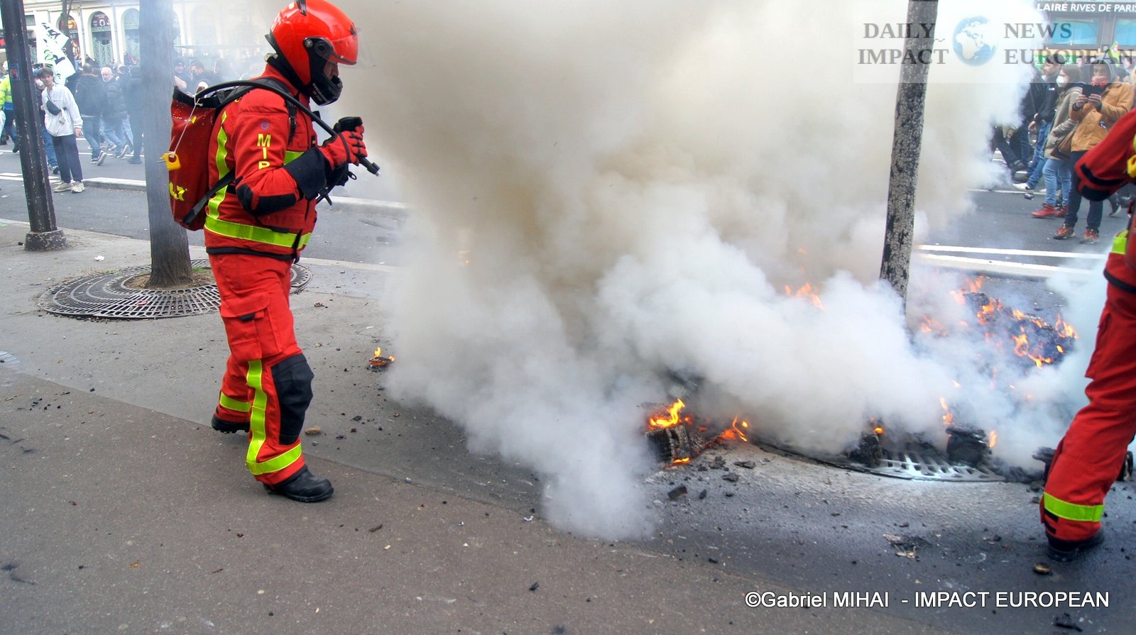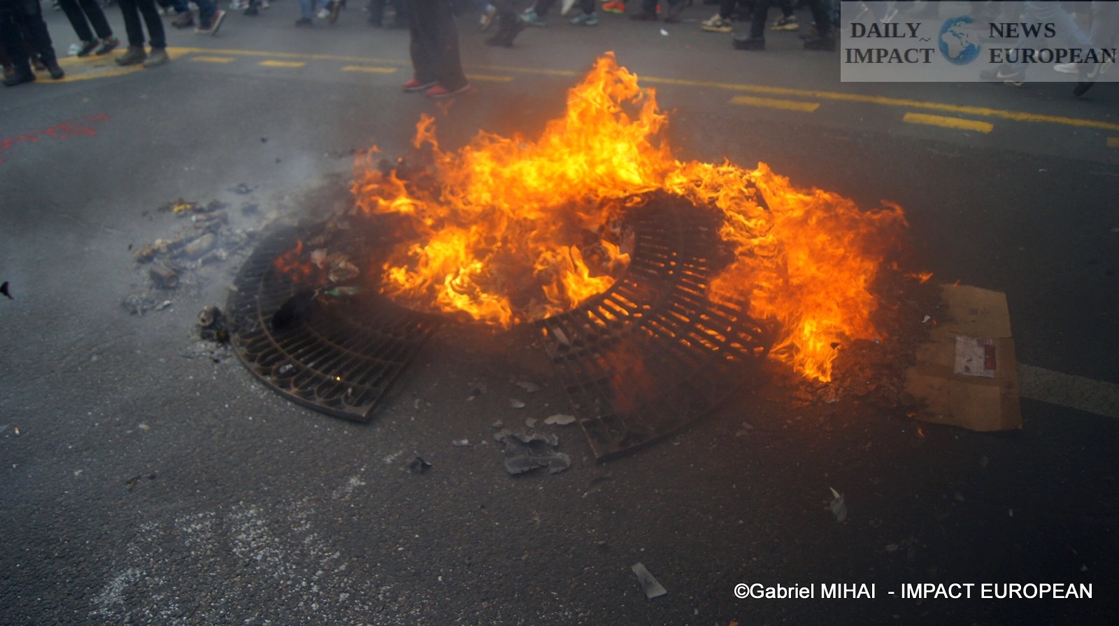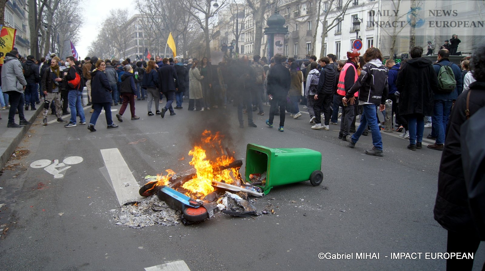 The Place de l’Opéra has emptied, but tensions and damage are observed in the adjacent streets. According to journalists on the spot, garbage cans mounted in barricades are set on fire everywhere, while thousands of demonstrators head for the Place de la République.