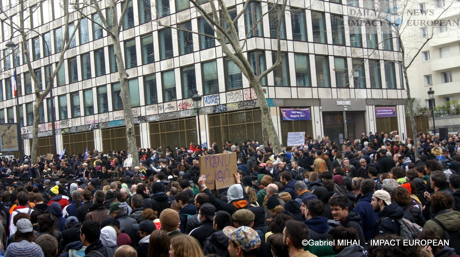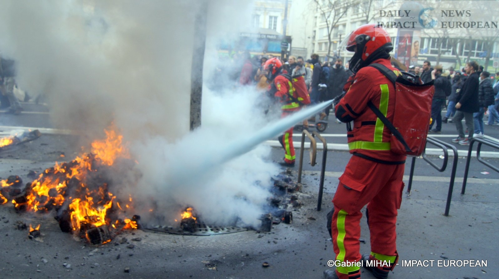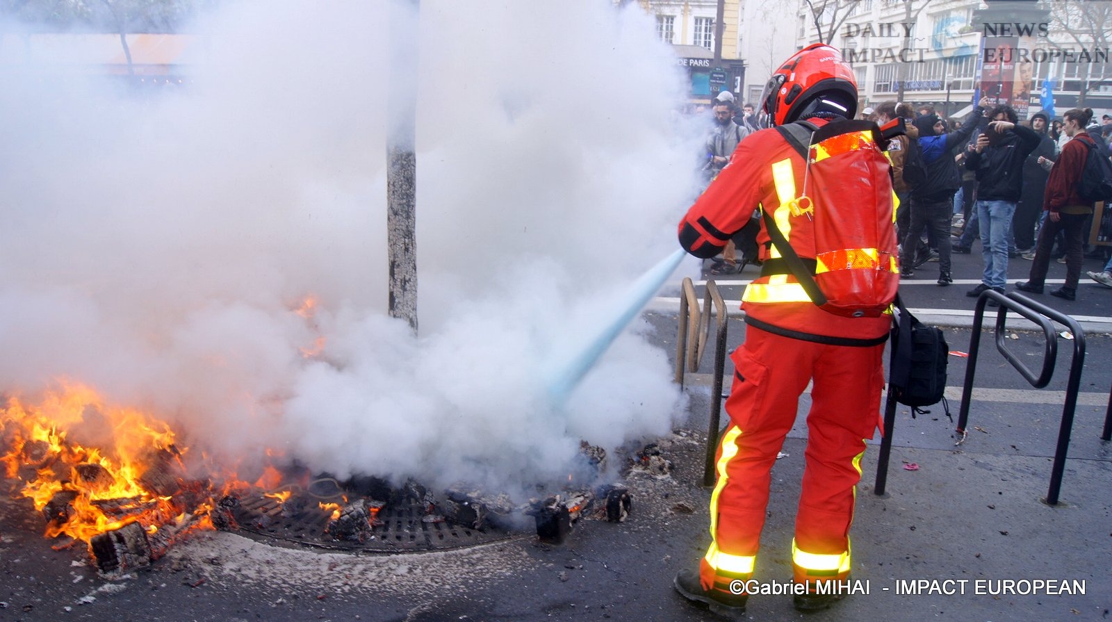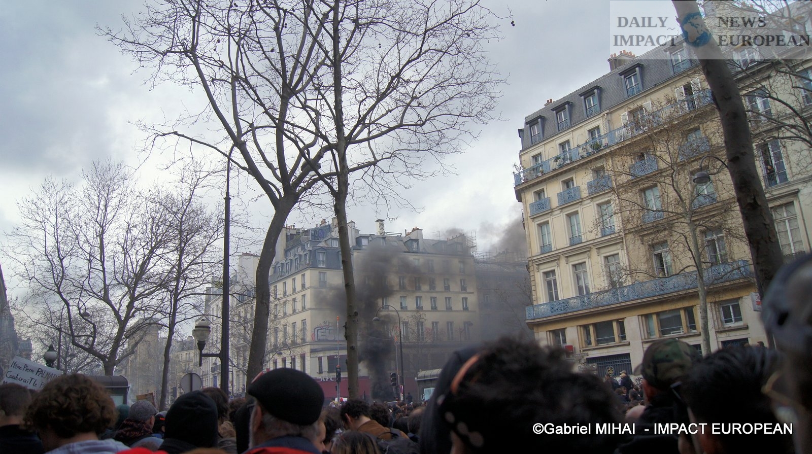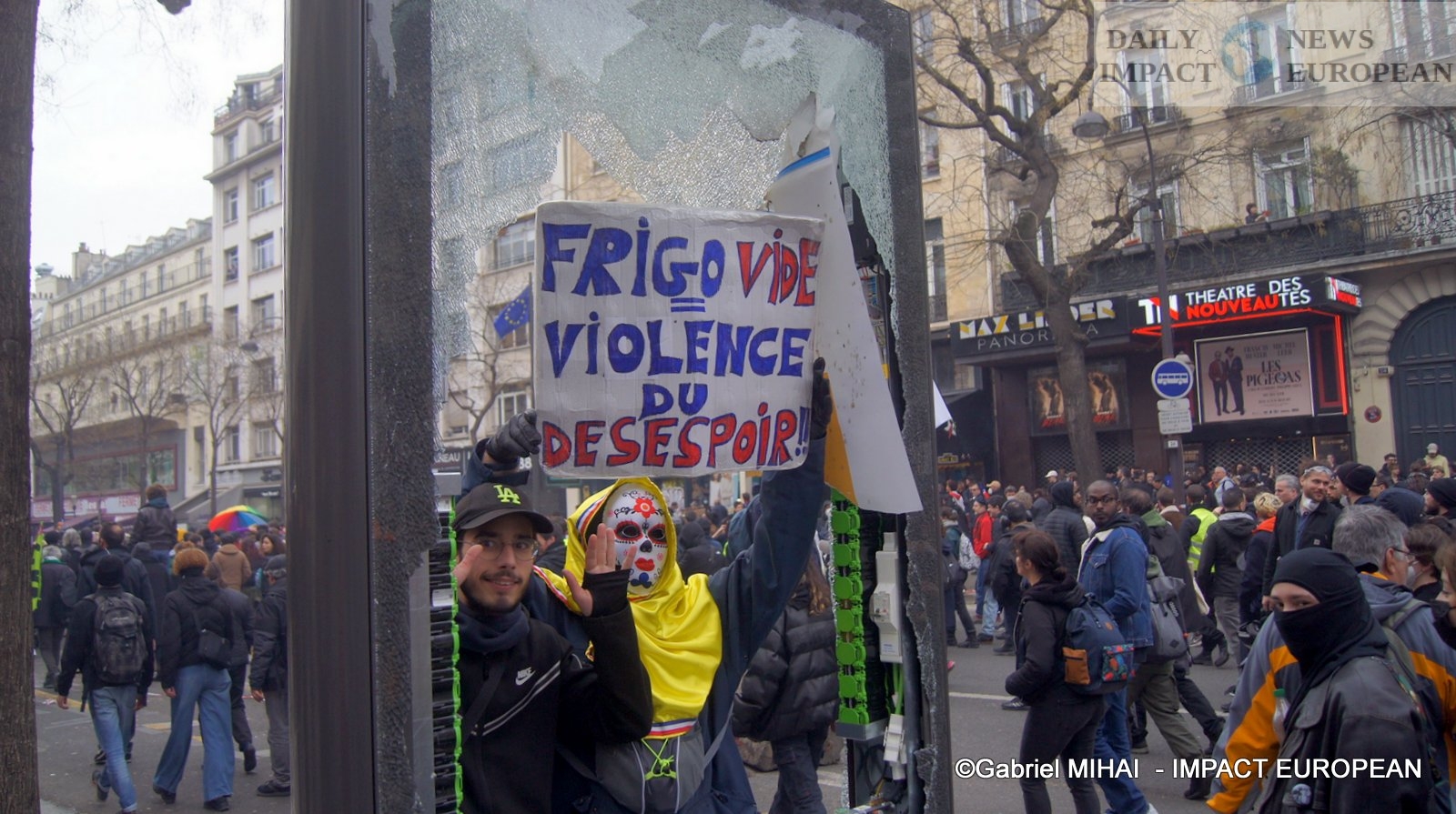 The Place de l’Opéra has emptied, but tensions and damage are observed in the adjacent streets. According to journalists on the spot, garbage cans mounted in barricades are set on fire everywhere, while thousands of demonstrators head for the Place de la République.