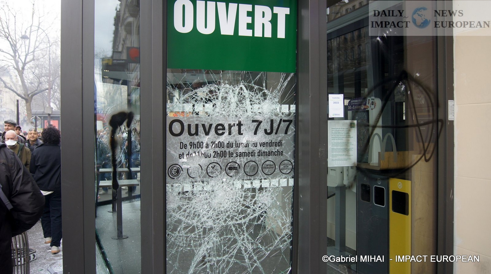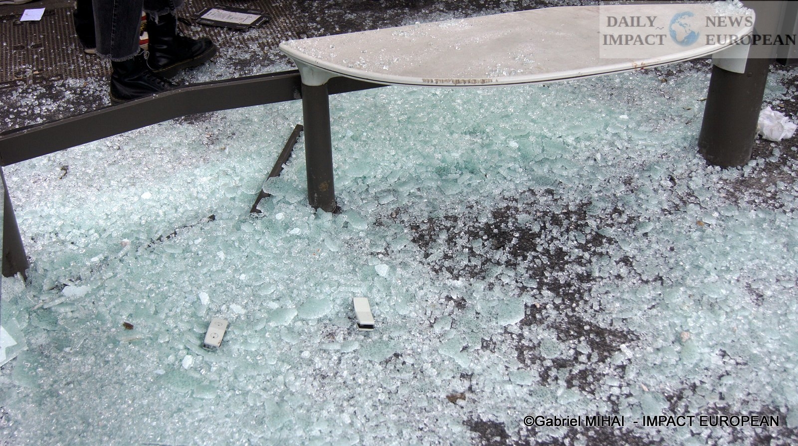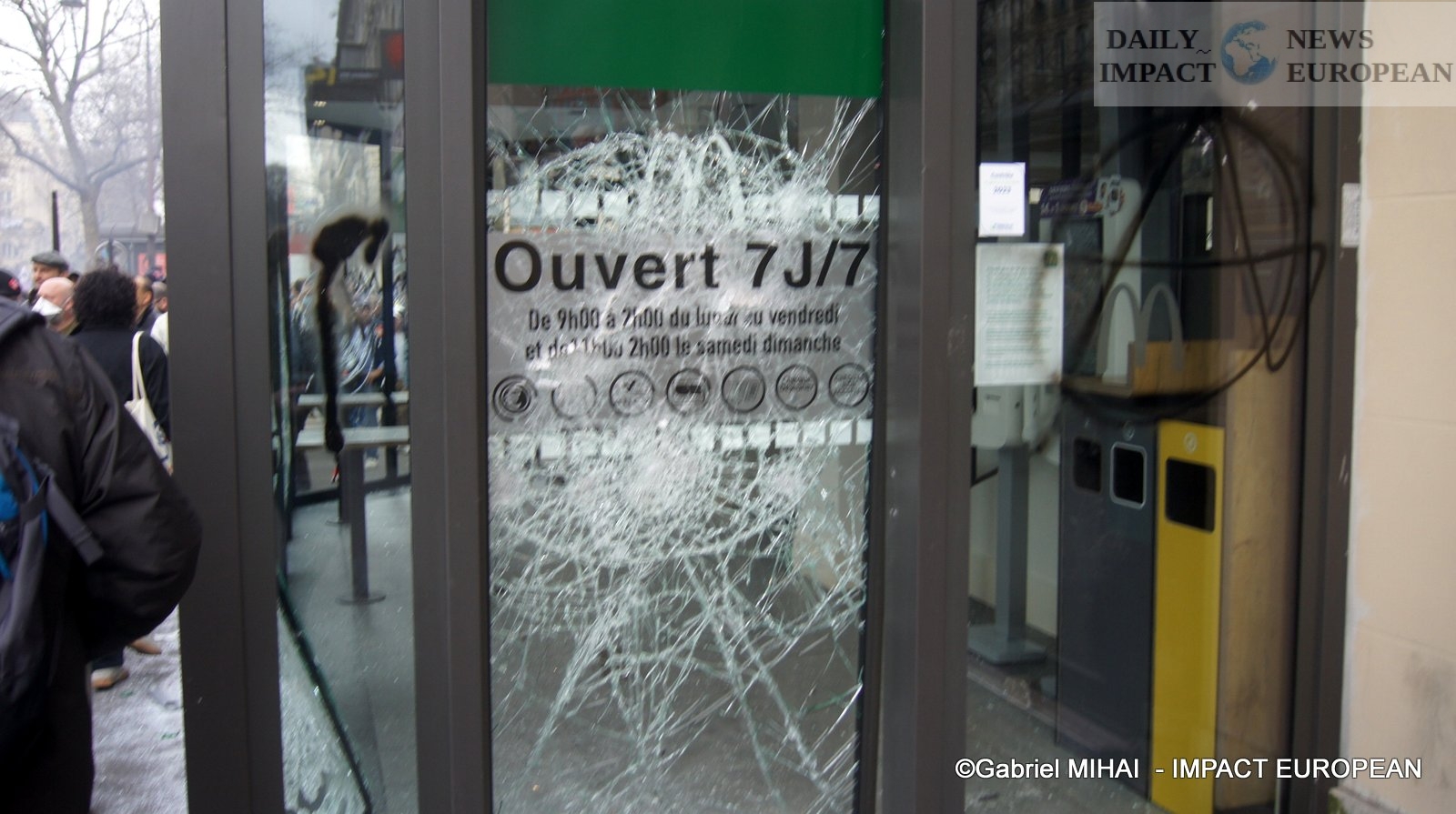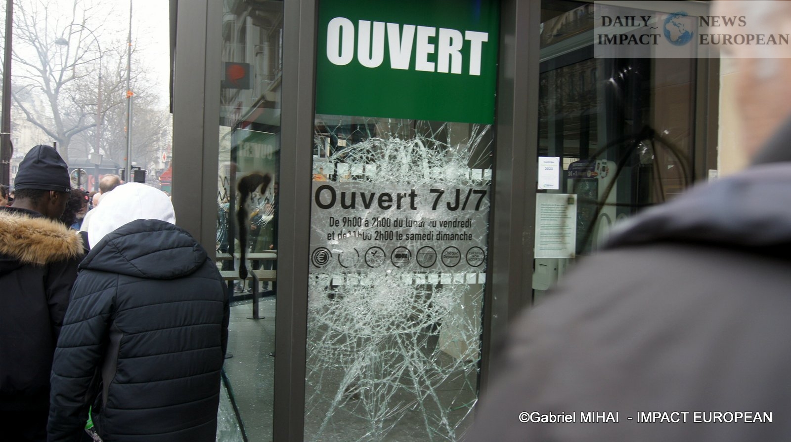 The McDonald’s located at the corner of boulevards Sébastopol and Saint-Denis was targeted by several individuals, the windows were broken. Another nearby fast food was attacked as well as a convenience store on Boulevard Saint-Martin.