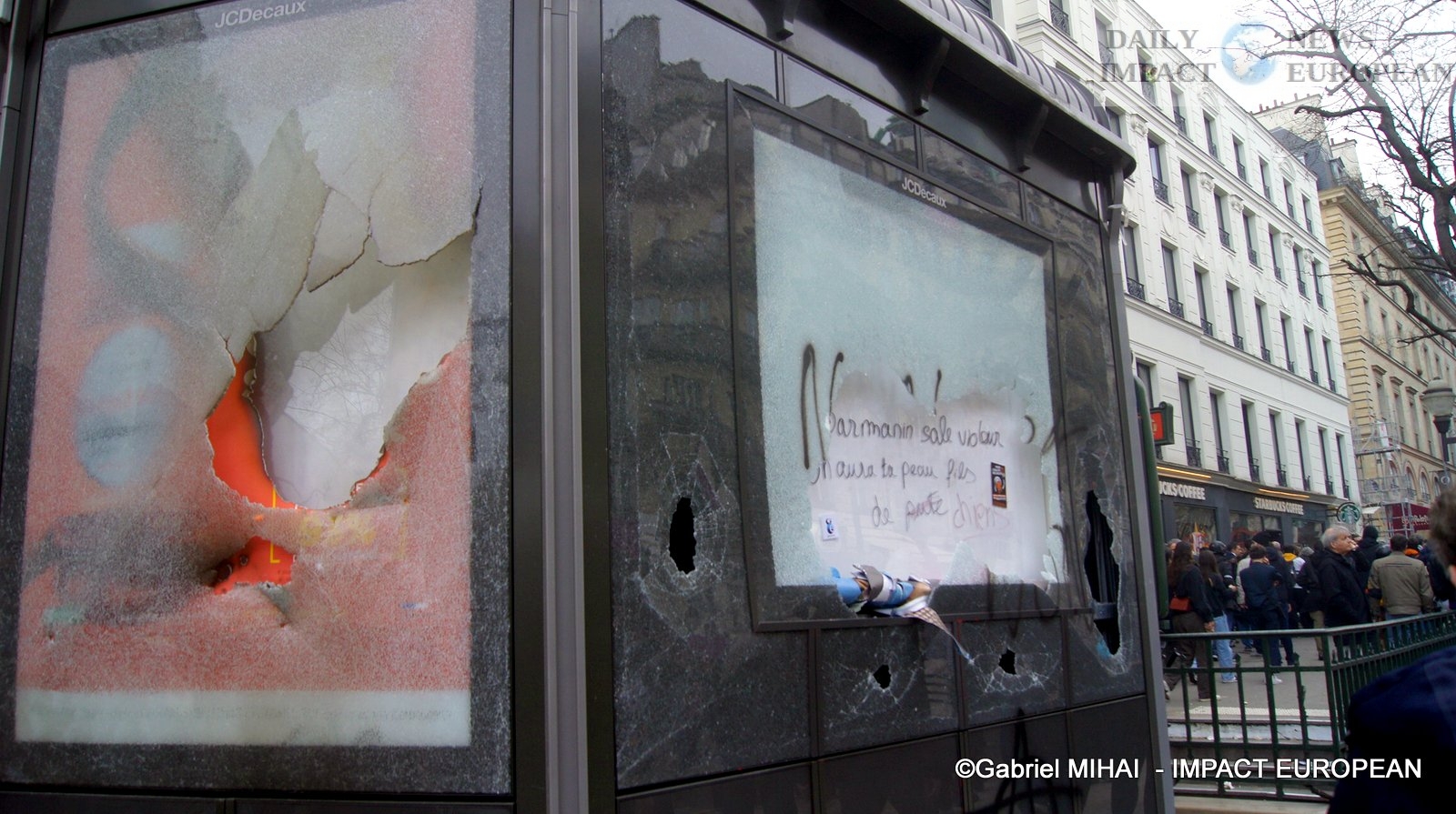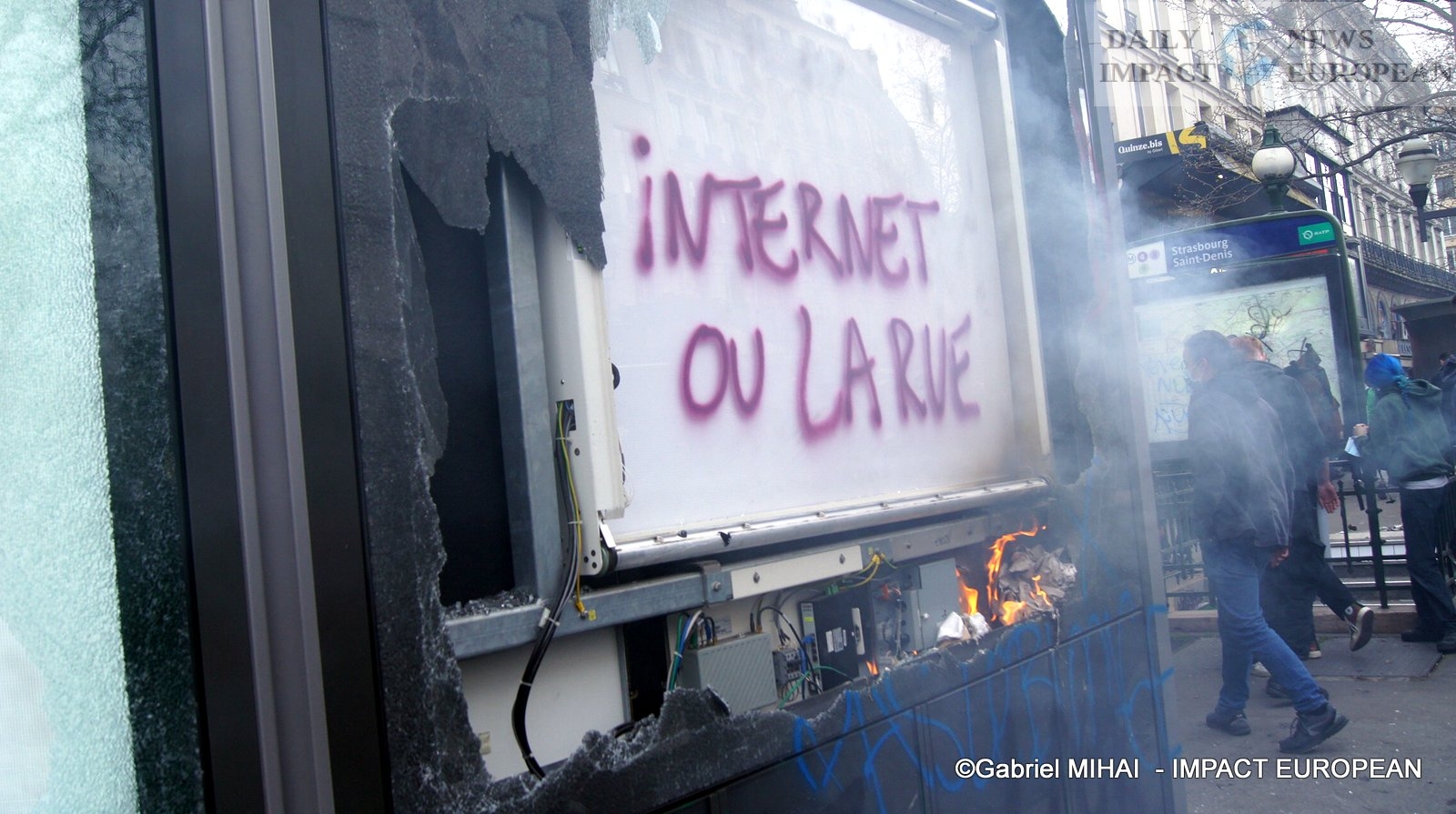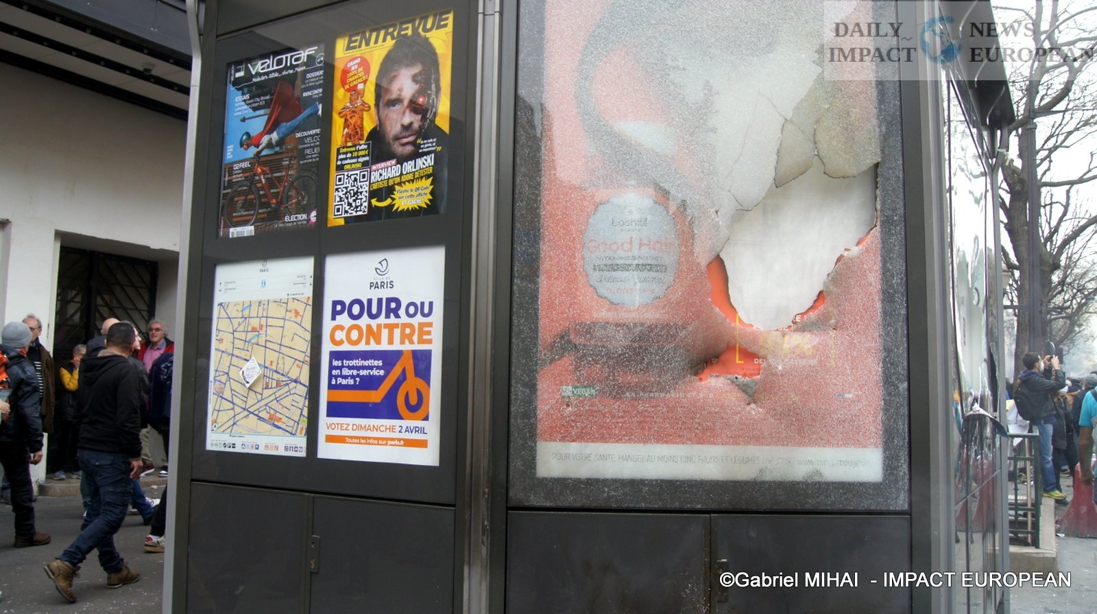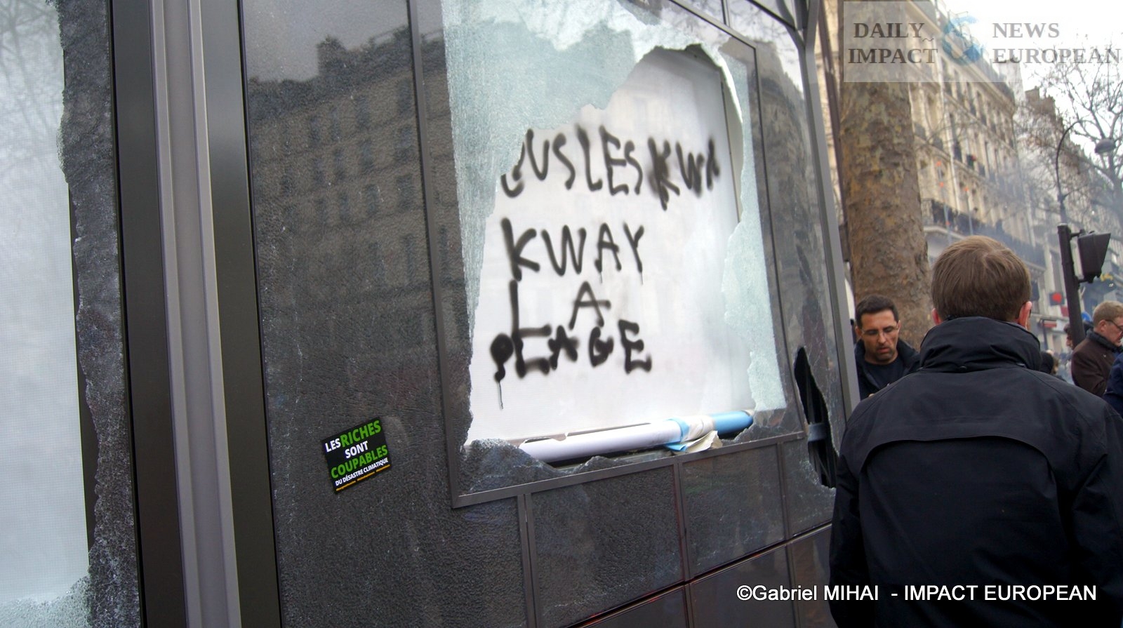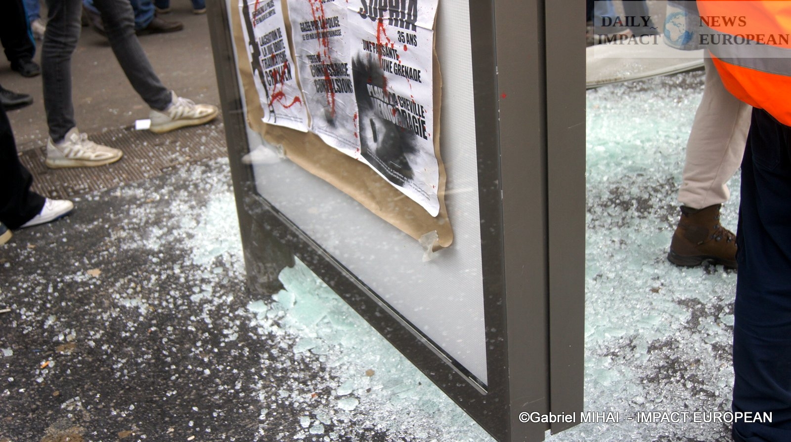 The McDonald’s located at the corner of boulevards Sébastopol and Saint-Denis was targeted by several individuals, the windows were broken. Another nearby fast food was attacked as well as a convenience store on Boulevard Saint-Martin.
