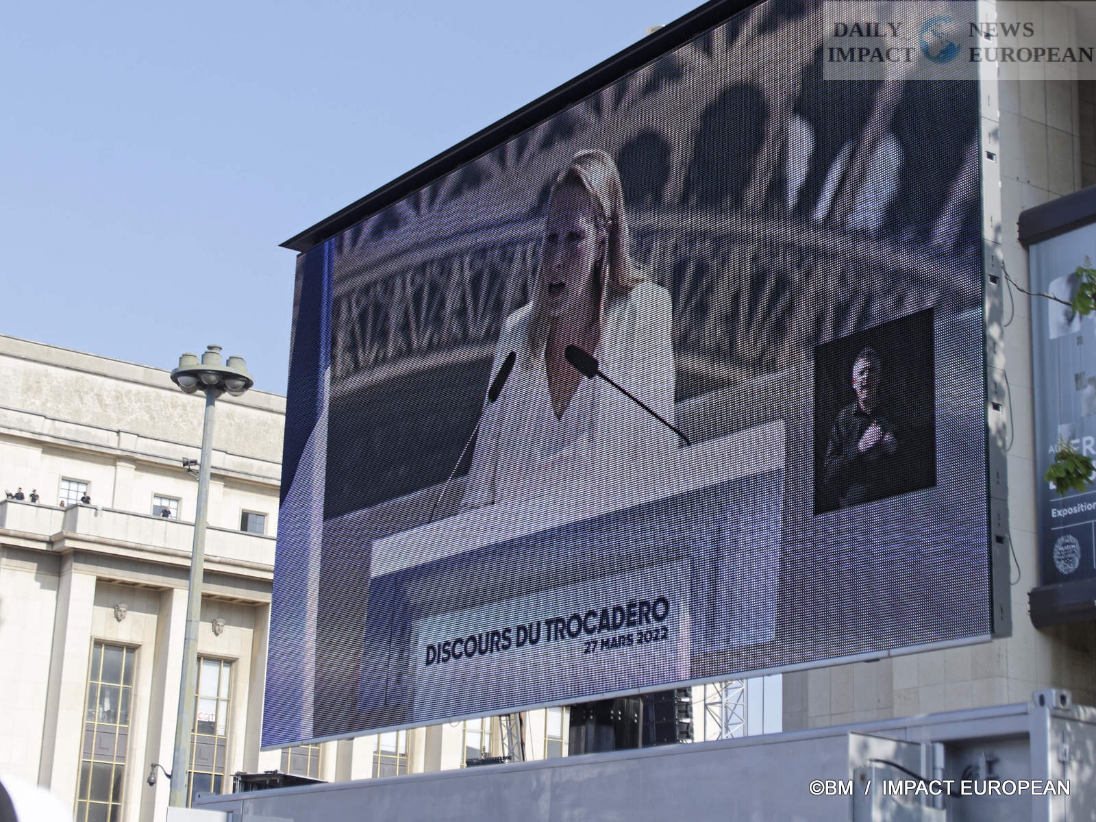 As in previous rallies, Marion Maréchal emerged largely victorious in the applause meter. Criticizing the « small political and media world », Marine Le Pen’s niece painted the picture of an « African France » from 2060, knowing the fate of Lebanon, Kosovo or « Eastern Christians ».