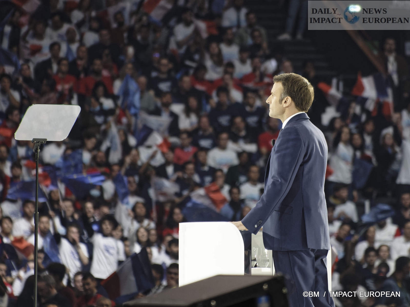 An “American” show. It is true that the layout of the room, with a central stage in the shape of a hexagon, its large screen in the background, had something to think of an American presidential convention, but produced in a French scenario.