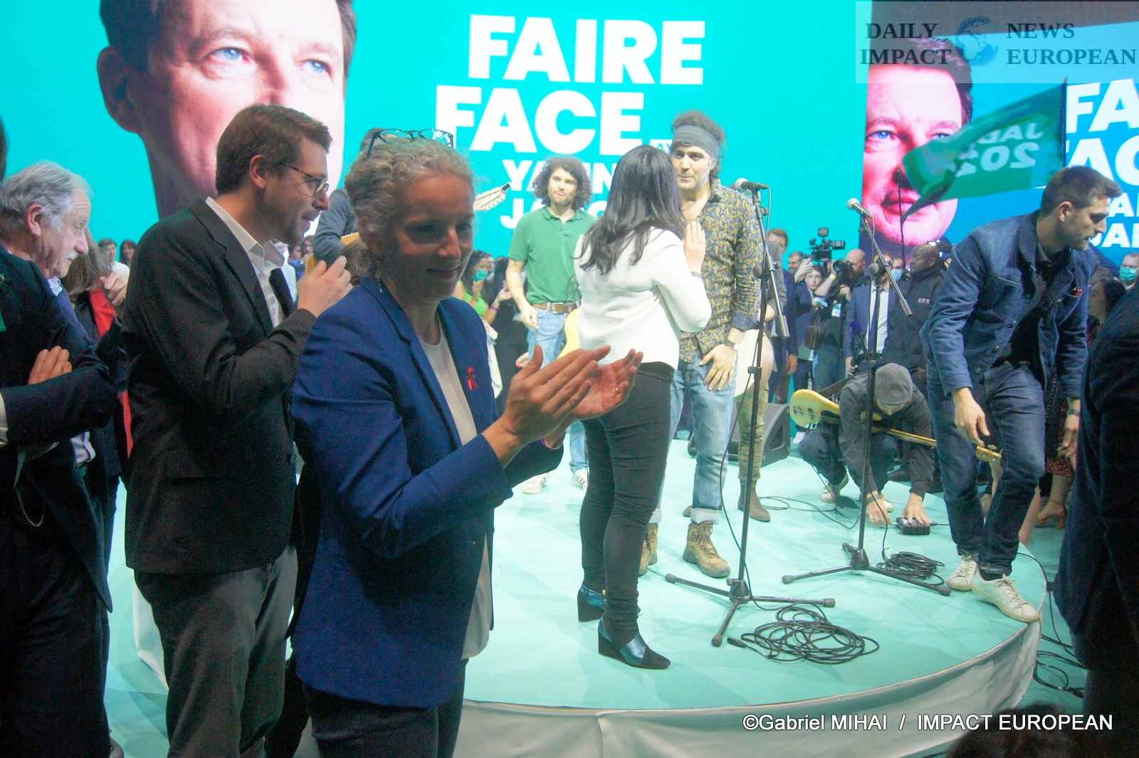 In the presence of a « reunited ecological family », bringing together its former competitors in the primary, including Sandrine Rousseau, yet ejected from the campaign, many elected officials and former presidential candidates, Dominique Voynet, Eva Joly and Noël Mamère (José Bové being absent due to covid), Yannick Jadot tackled Emmanuel Macron’s balance sheet and the power of lobbies.