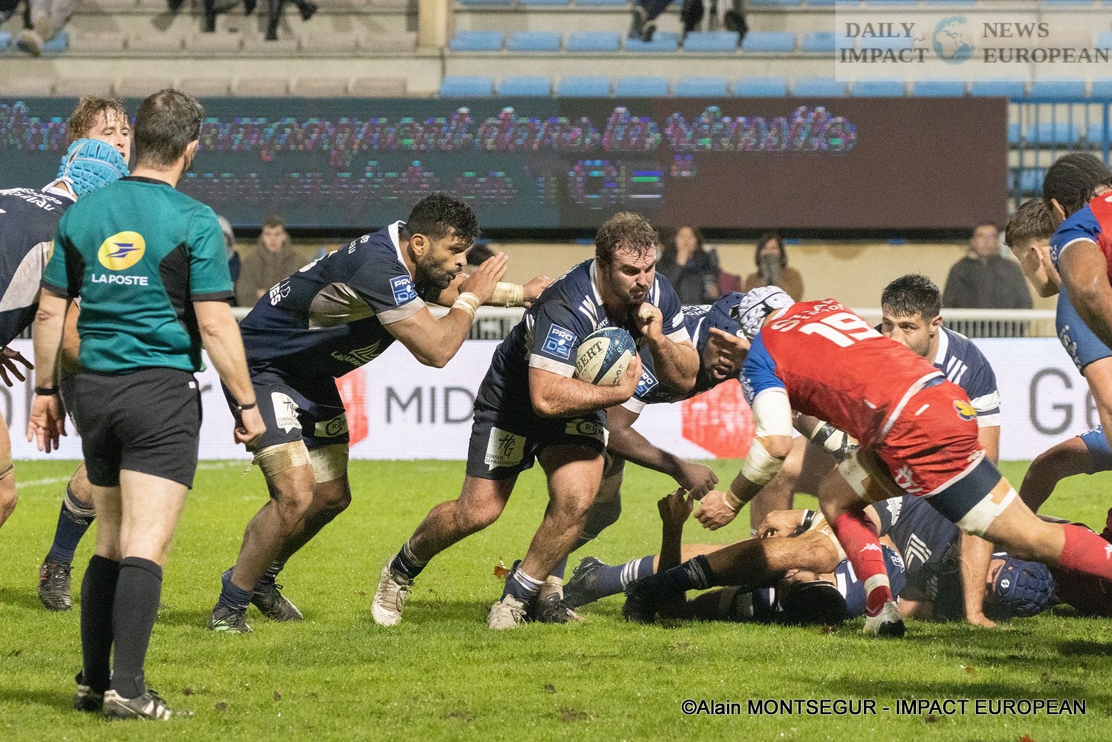 Colomiers leads 19-12 with a new penalty from Max Auriac. The domination of the locals is confirmed. Grenoble still recovers a penalty in the 56th minute, converted by Thomas Fortunel (19-15). A little after the hour mark, they reach the 22 columérins meters and get a penalty at 5 meters.