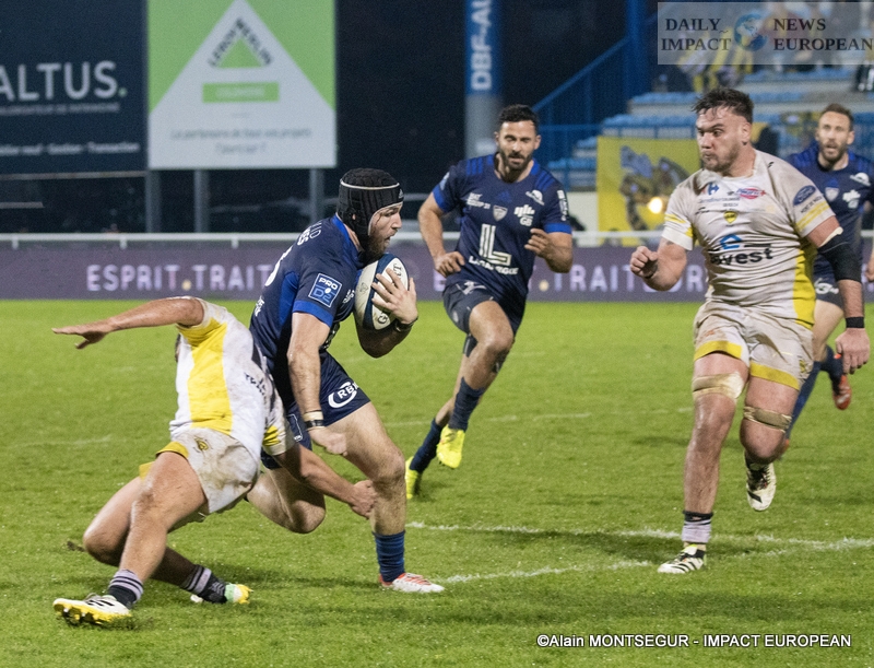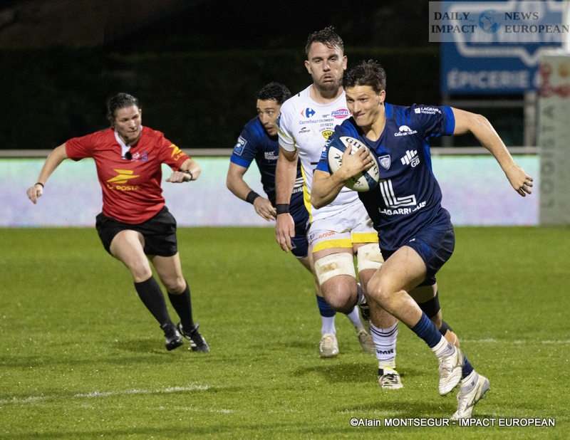 The carried balls are closely monitored by referee Aurélie Groizeleau and Mont de Marsan is penalized, allowing scorer Thomas Girard to score two penalties (21st, 32nd). However, it was precisely on one of them that the Mons scored the second try through Florian Dufour (29th). Colomiers only leads by one point at half-time (11-10).