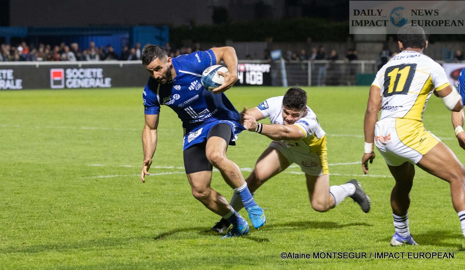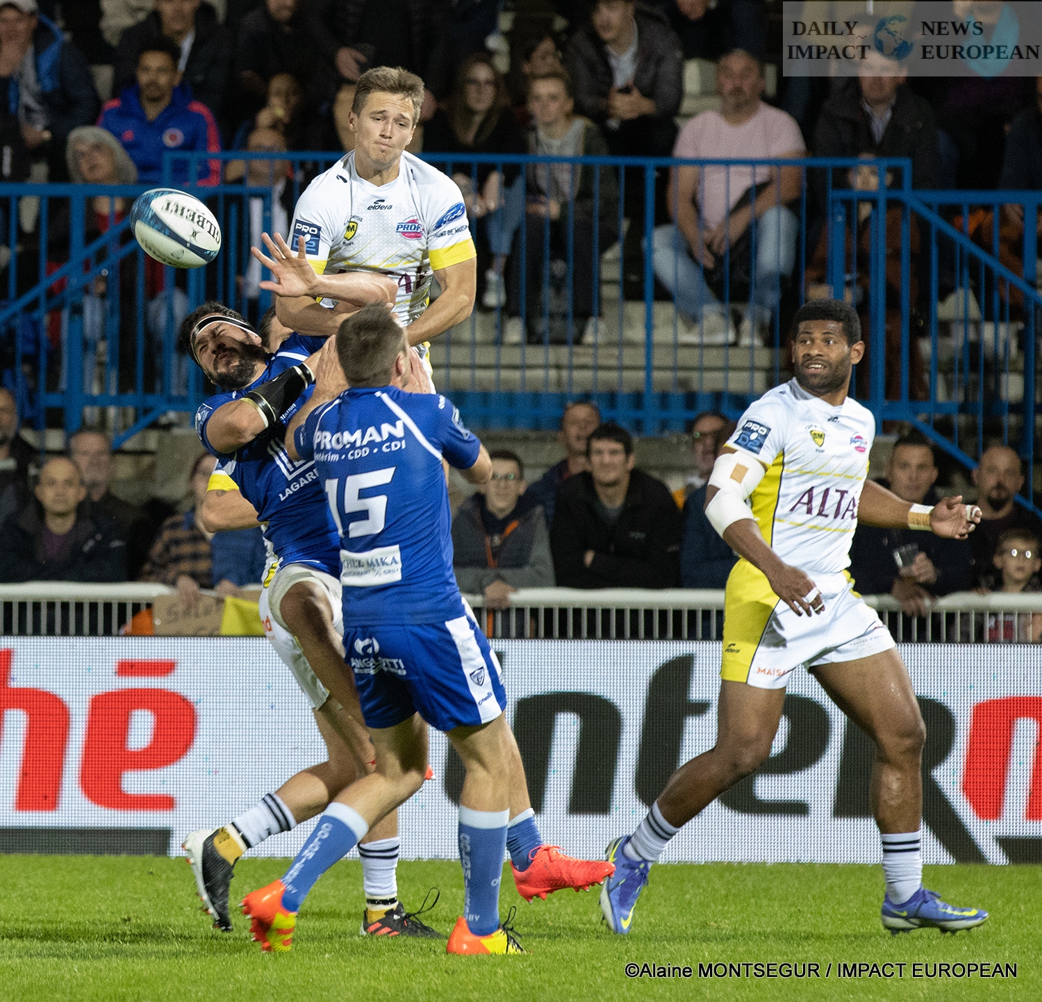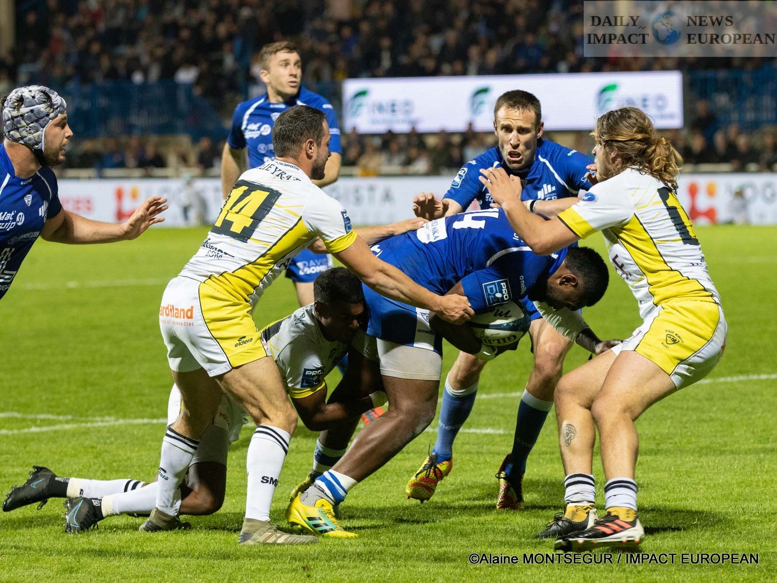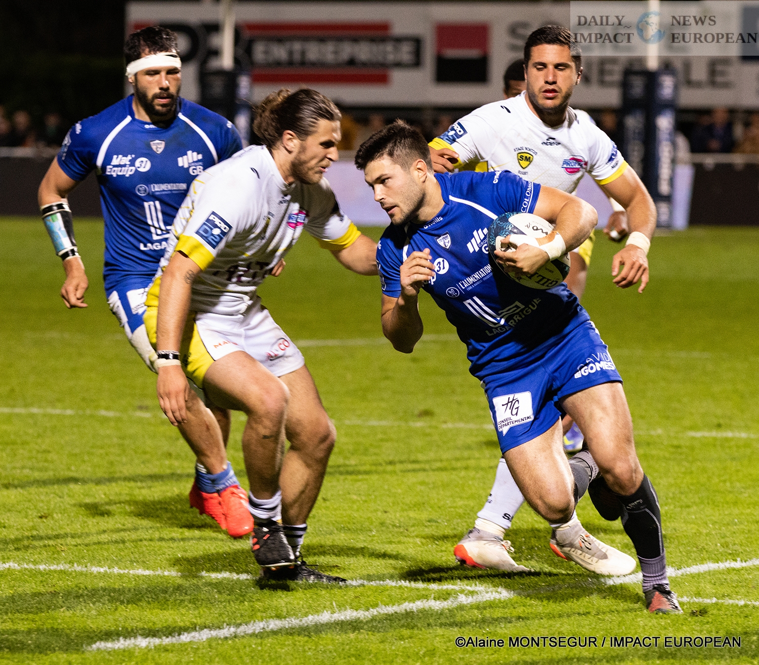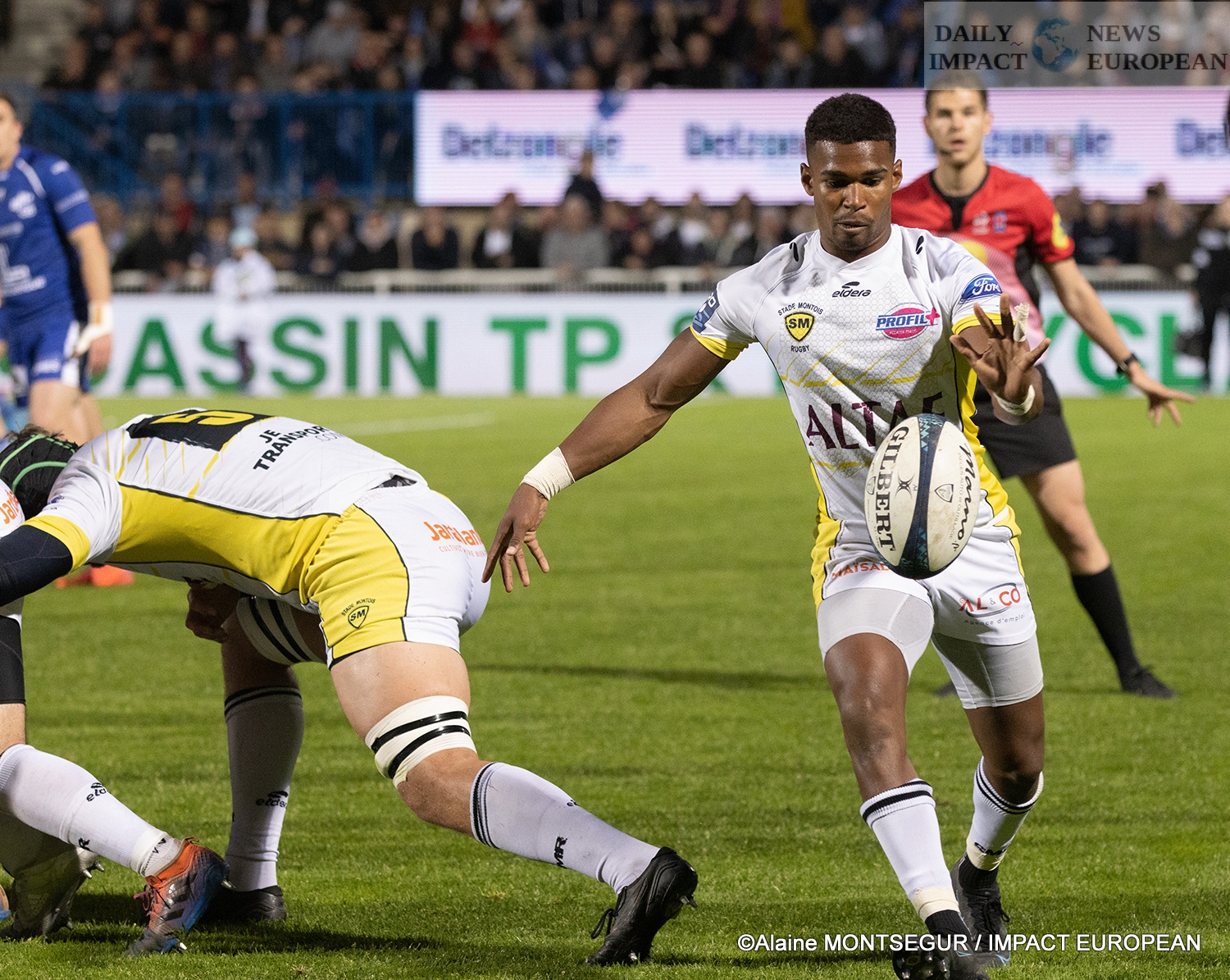 On receiving a game at the foot of pressure, Laousse-Azpiazu avoids two tackles and leaves at 100 an hour in the opposing camp before serving Mensa on the wing. The Mons center is boxed up by Ricard in a ruck and recovers a penalty.