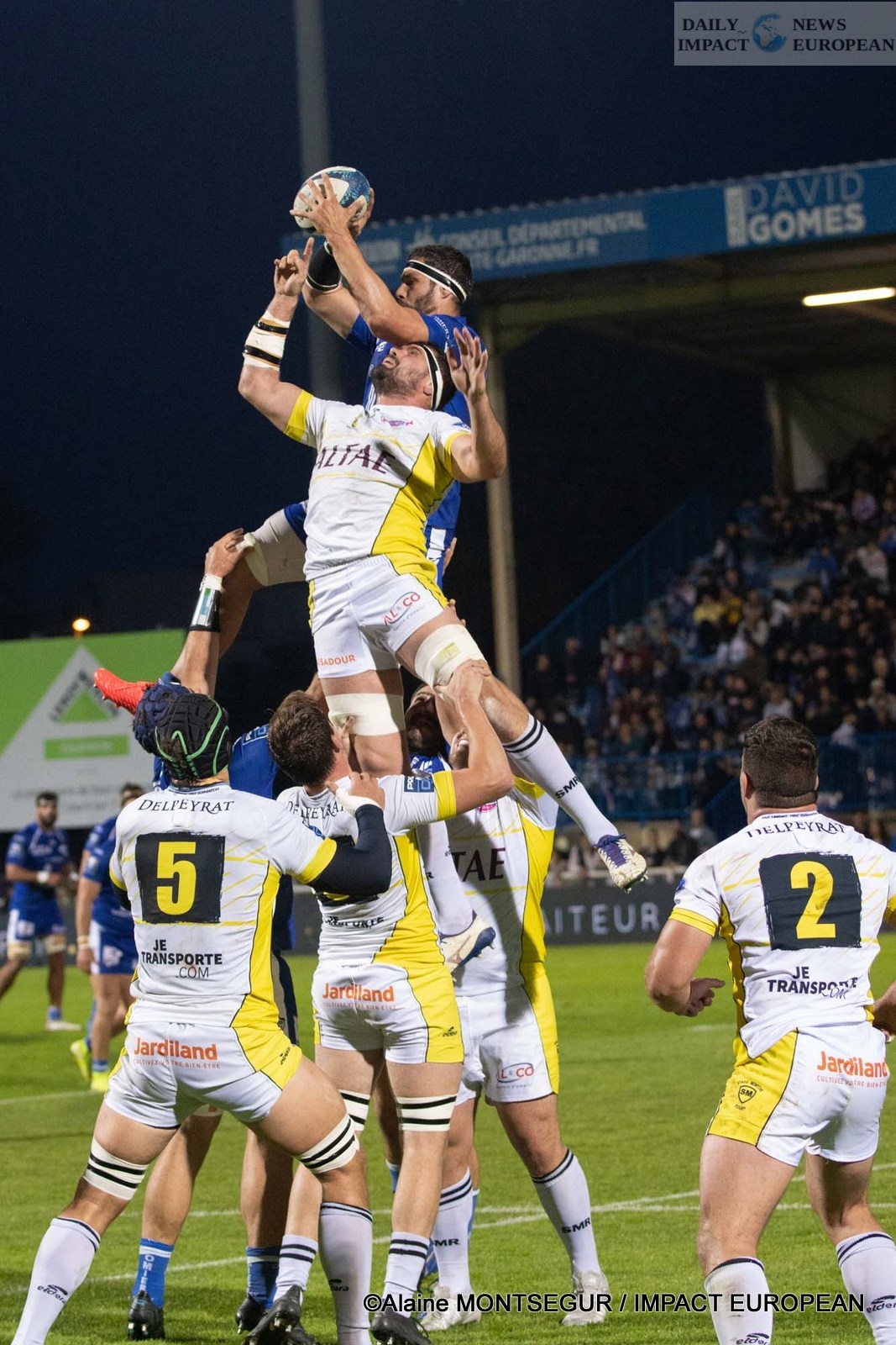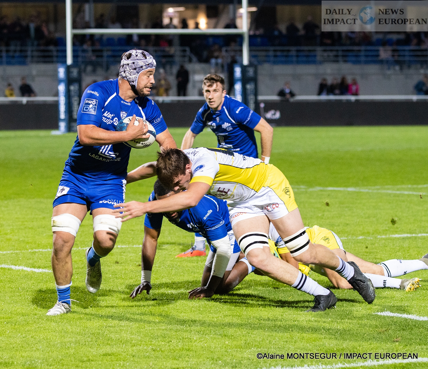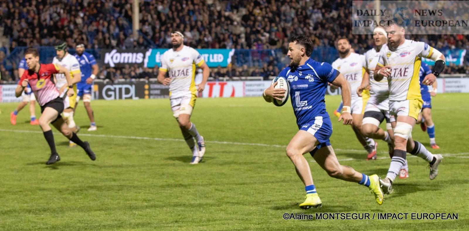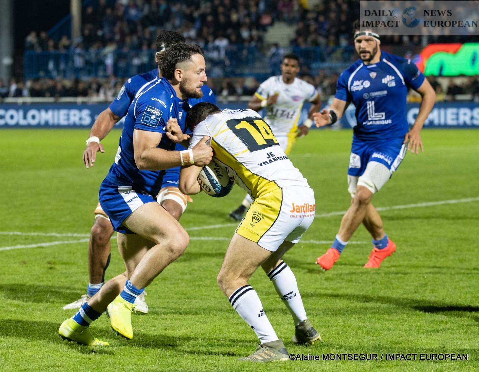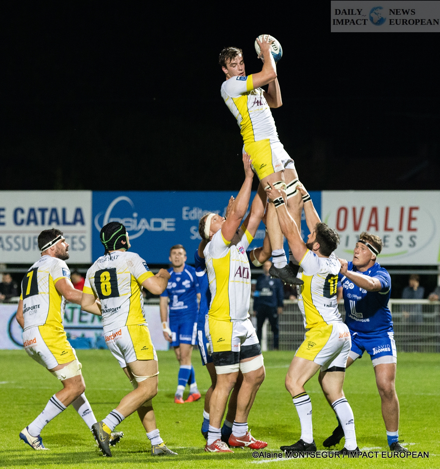 On receiving a game at the foot of pressure, Laousse-Azpiazu avoids two tackles and leaves at 100 an hour in the opposing camp before serving Mensa on the wing. The Mons center is boxed up by Ricard in a ruck and recovers a penalty.