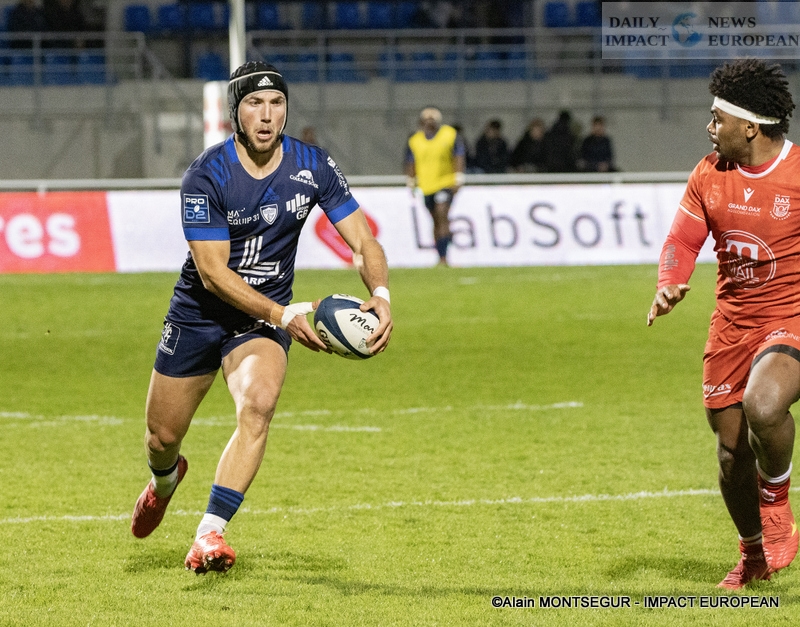 Dax finished the first period well and scored the first try of the match at the half-hour mark thanks to a fiery Jope Naseara in the first period (31st, 6-10). The Fijian winger narrowly missed scoring a second try in added time. Following a first-hand attack, he was found at the end of the line at forty meters. Naseara achieves a personal feat to flatten a corner… but his attempt is refused on video for a slip of a shoe on the touchline. One of the turning points of the match.