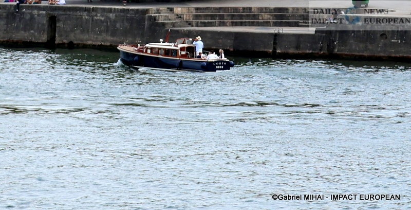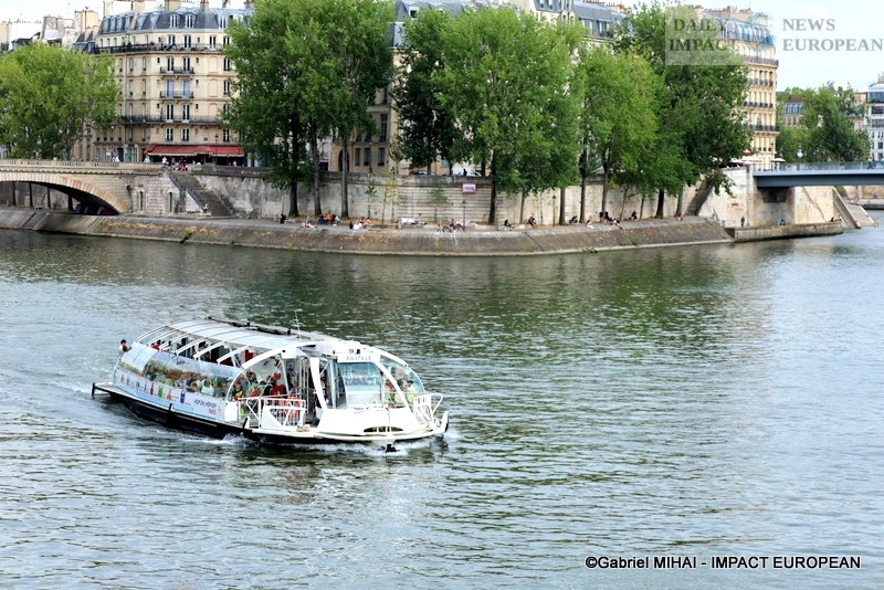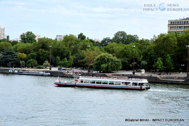 The first boats were all numbered and had on board passengers with signs to interpret the delegations.; the second passage took place in the middle of the morning. The convoy passed along the Iles St-Louis and the Cité, the Hôtel de Ville, the Louvre, the Musée d’Orsay, the Place de la Concorde and the National Assembly, the Grand Palais, to reach the Pont d’Iéna.