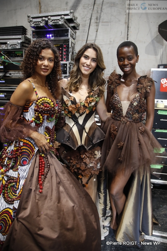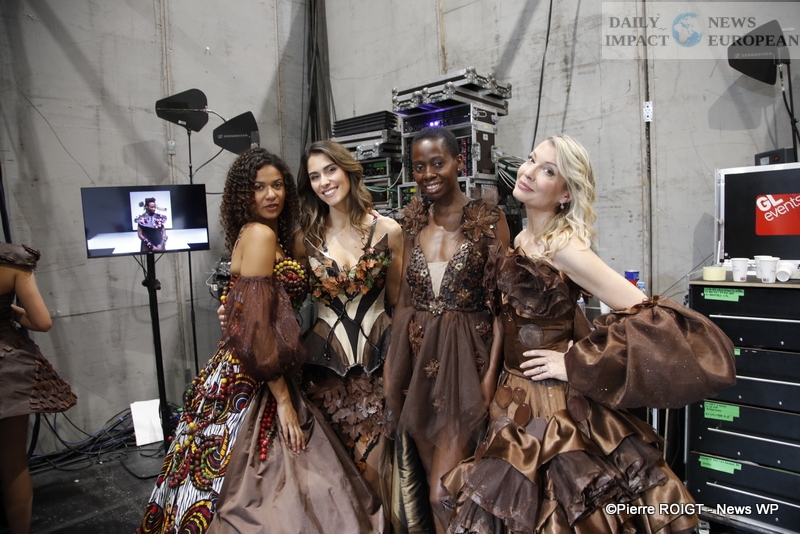 This year, Nadège Beausson-Diagne wore a dress weighing more than 8 kg, for her 4th participation. She was accompanied by other personalities from the small and big screen. The dress was the result of a collaboration between designer Michaëla Daniel-Thomas of the Kathshoppin Couture brand and chocolatiers Jean-Luc Decluzeau and Damien Vidal, founder of Bille en tête, it required 130 hours of work from the team. It took 10 to 15 kg of chocolate balls, or 3,500 balls used as beads and embroidery. Once pierced, the beads were threaded onto a brass wire and adapted to the pattern of the fabric (wax) which recalls the pod at different stages of its manufacture.