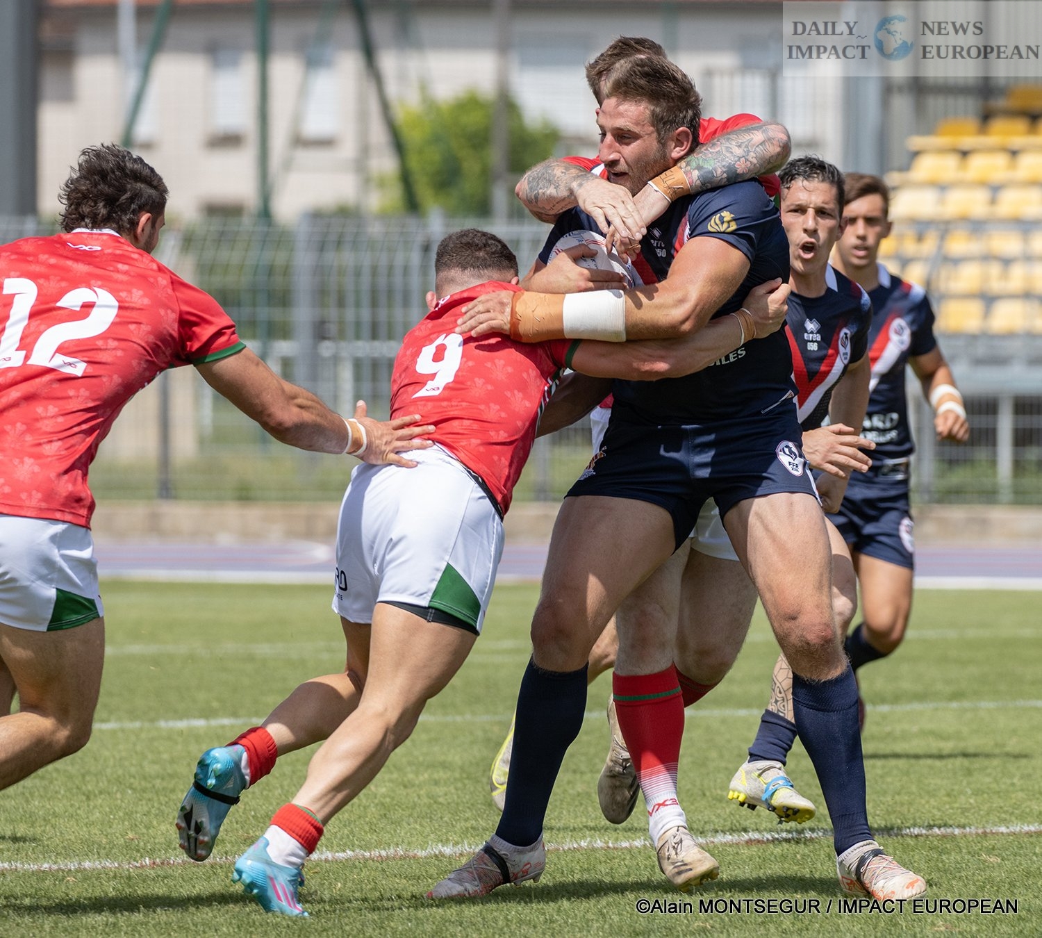 Despite the very intense wind on the Municipal Stadium of Albi, the Blues managed the first act well. With the headwind, they still scored two tries in the first forty minutes thanks to captain Benjamin Garcia (19′) and Mickaël Goudemand (35′). The French therefore logically led at the break (12-0).