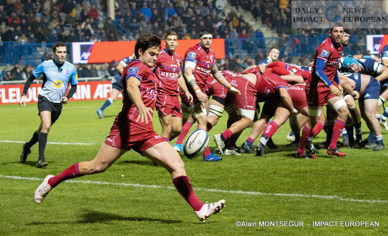The introduction will be for Colomiers on the 22 meters of Béziers, I game moves in the axis with an advantage in progress for Colomiers.
