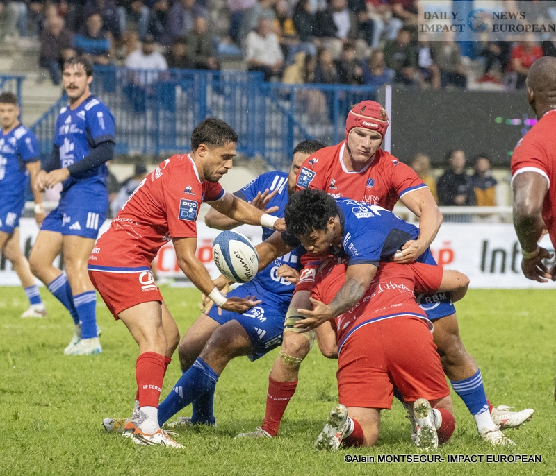 In the fifth minute of play on a penalty, Abzhandadze rewards the Aurillac efforts at 0 – 3. The locals respond and the Argentinian recruit Joaquin de la Vega puts the two teams back on level terms (3 – 3, 8th). While the rain is present in Colomiers, Aurillac takes the lead again on a new penalty (3 – 6, 16th).