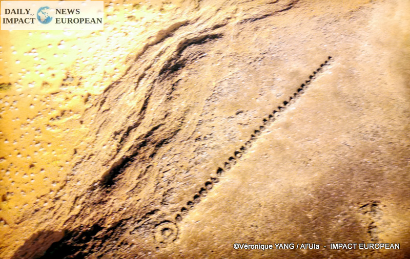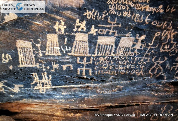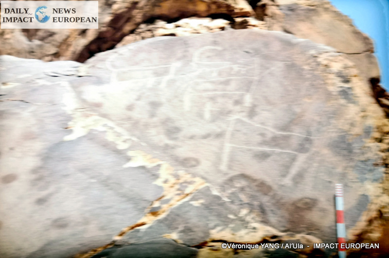 Exclusive films by Yann Arthus-Bertrand accompany the visit to the exhibition, revealing archaeological research (axes, bifaces, cutting tools from Paleolitic, stone structures from Neolitic …) and showing the societies and civilizations that existed in the region which contains many prehistoric remains represented by rock engravings (hunters, dromedaries, ostriches, ibex, felines, cattle …) on the rock walls as well as thousands of inscriptions engraved and written in the different alphabets of Arabia ancient (Aramaic, Dadanite, Thai, Minean, Nabataean, Latin and Greek).