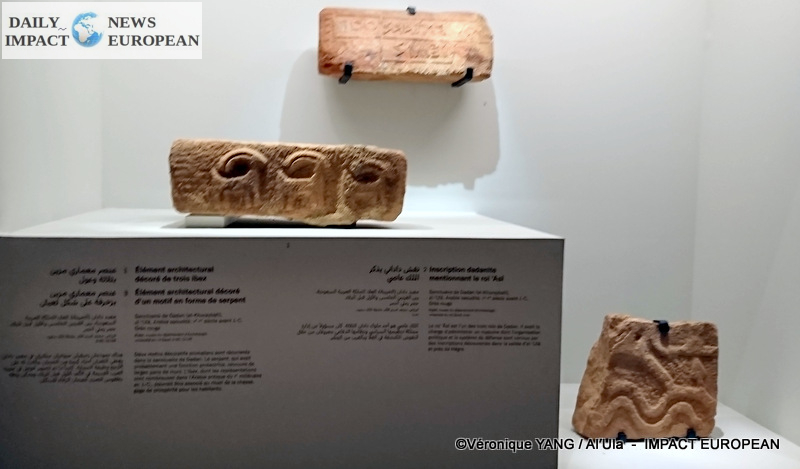 For more than 20 years, the 2 curators of the exhibition, Leila Nehmé (French archaeologist and epigraphist) and Abdoulraman Alsouhaibani (Saudi archaeologist) have worked together to build a journey into the history of this unique place where peoples have come and gone. of the Neolithic, kingdoms of Dadan and Lihyân, Nabatean civilization, Roman Empire, Umayyad and Abbasid caliphate but also Ottomans … Finally, the beginning of the XXth century saw the construction of the Hijâz railway which linked Damascus to Medina, becoming a road additional for Muslim pilgrimages to Mecca and Medina.