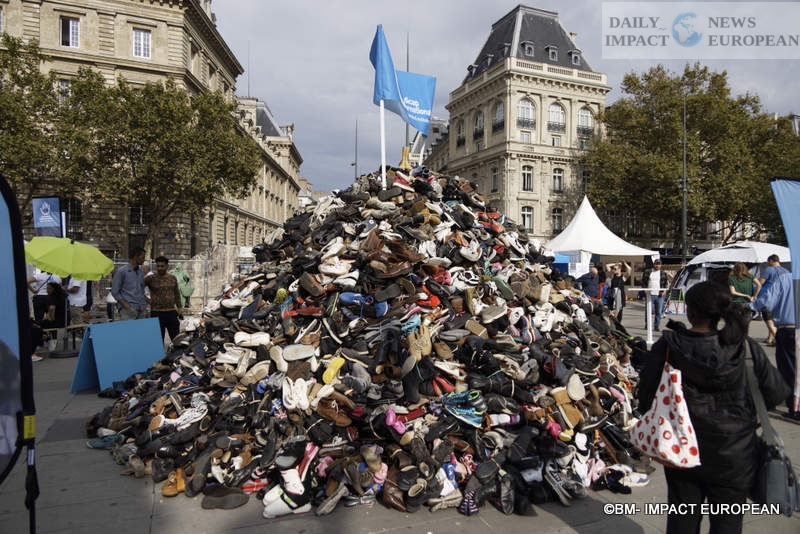 Since 1995, Parisians have been meeting in emblematic places of the capital to demand the banning of bombs and other explosive devices, and by signing a petition. The signatories are then invited to throw away their shoes, as a sign of protest.