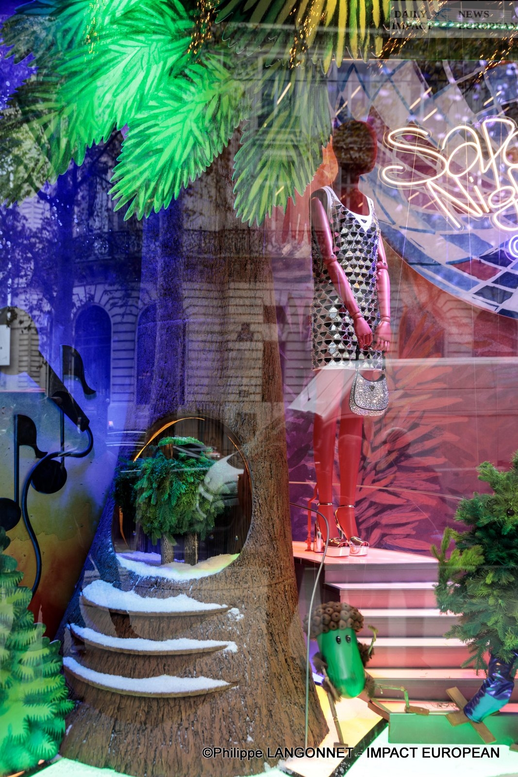 Another big name in the district, the Galeries Lafayette were the last to participate in the illumination of the windows. It was on November 16 at 6 p.m. that model Cindy Bruna, chef Jean Imbert, actor Malik Benthala and singer Louanne kicked off the festivities on the theme: « Planète Sapin » We discover 11 paintings around the world of the tree…