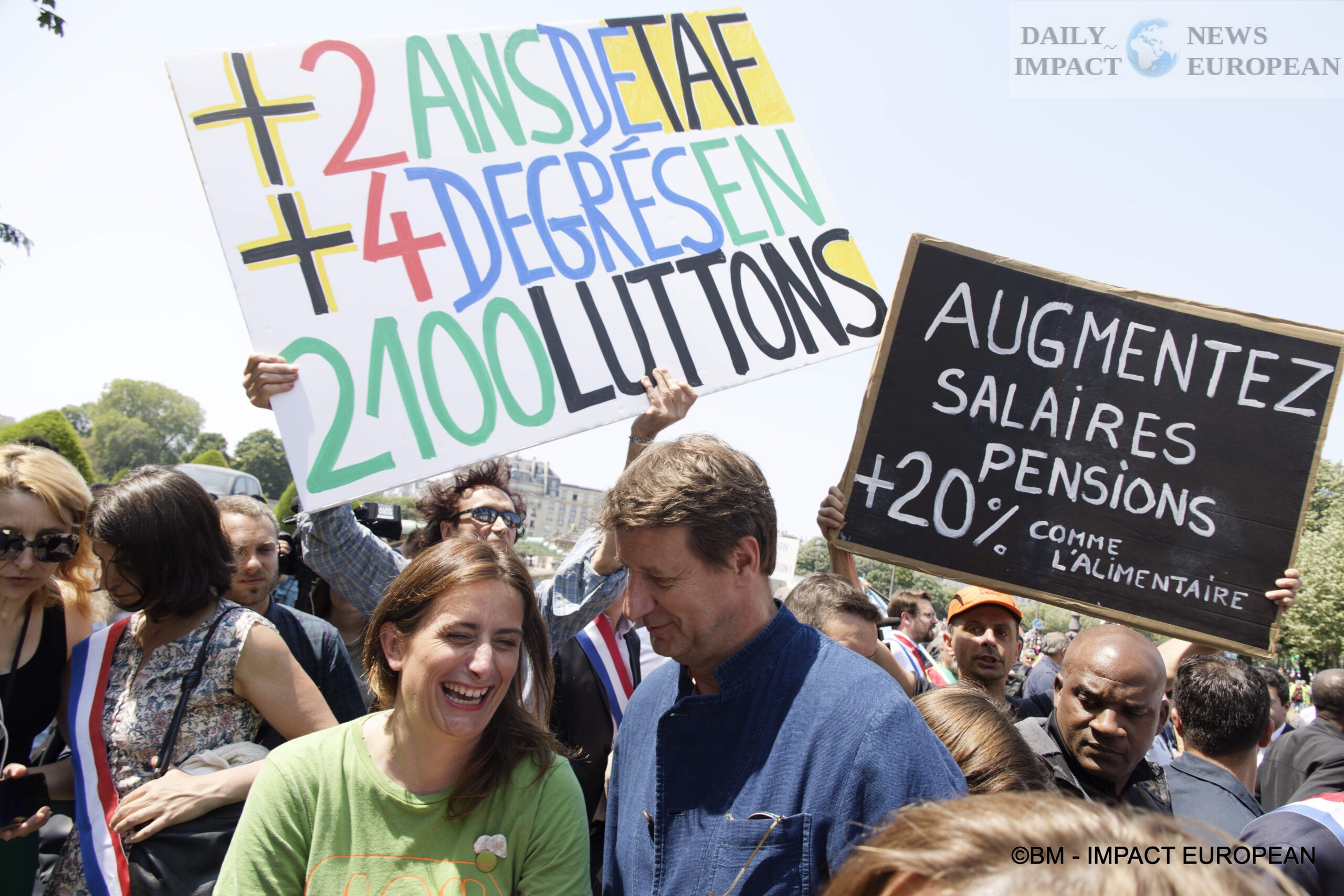 The prefecture meanwhile counted 31,000 protesters in Paris, while the interior ministry said 281,000 people had marched across the country. 28 arrests (including 14 prior to the demonstration). A policeman was injured by a stone throw.