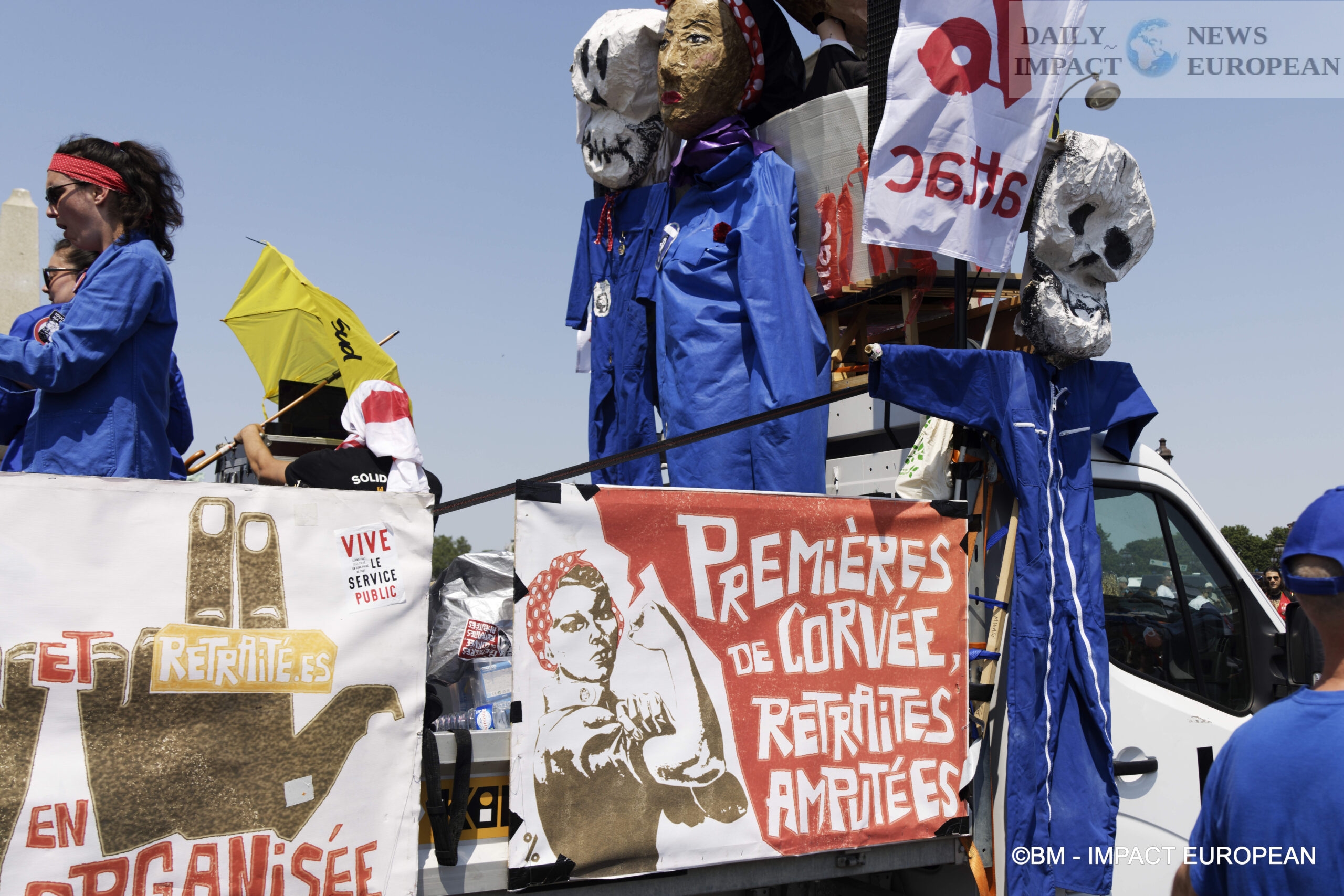 Today in Paris, the declared strike and demonstration was more of a festive street spectacle, although slogans were chanted and there were incidents of violence, there was singing and dancing.