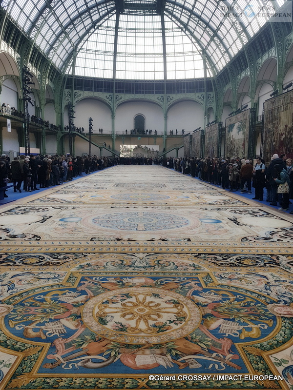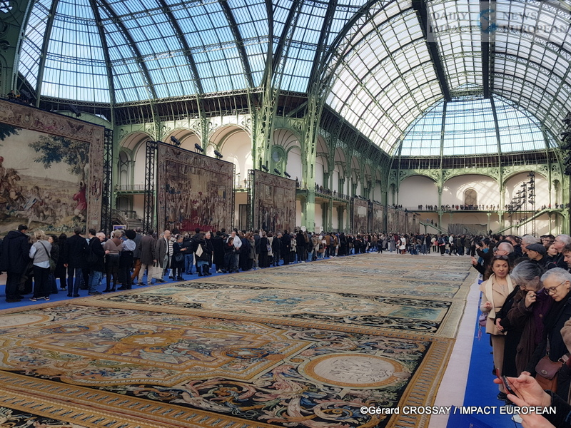 There was a large crowd this Saturday in February at the entrance of the Grand Palais to admire the immense carpets that Colbert, intending to make the glory of Louis XIV shine forth, commissioned in 1668 from the Savonnerie manufactory for the floor of the Grande Galerie of the Louvre Palace, then the seat of the French monarchy before its move to the Château de Versailles.