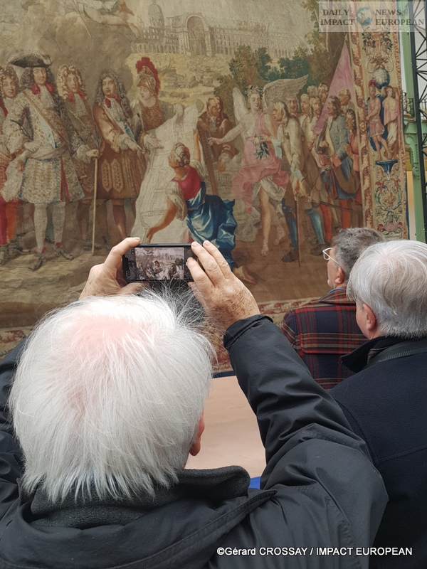 One almost feels the urge, like Aladdin, to mount one of these carpets and fly merrily from the Louvre to Versailles. But there is no question of walking on these Crown jewels… except for a single one on which visitors eagerly crowd to set foot. To my knowledge, however, no one has taken off.