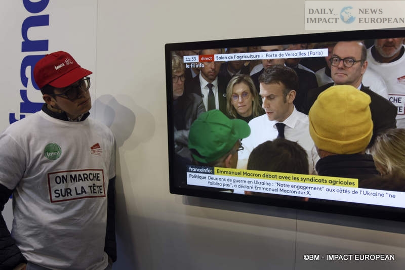 Emmanuel Macron spoke one last time before leaving the Agricultural Show, early Saturday evening, from Hall 4, where the President of the Republic spent part of the afternoon. The farmers demonstrating in Hall 1 earlier in the morning had been kept out of this part of the visit by the event security service and the police.