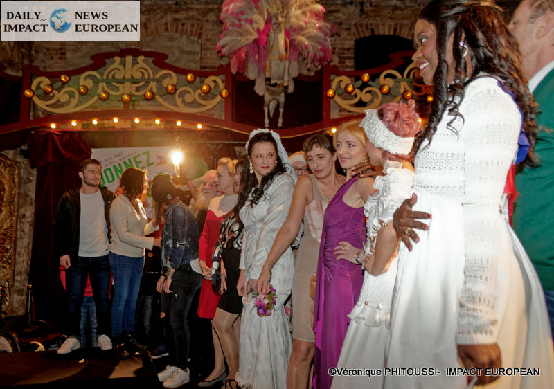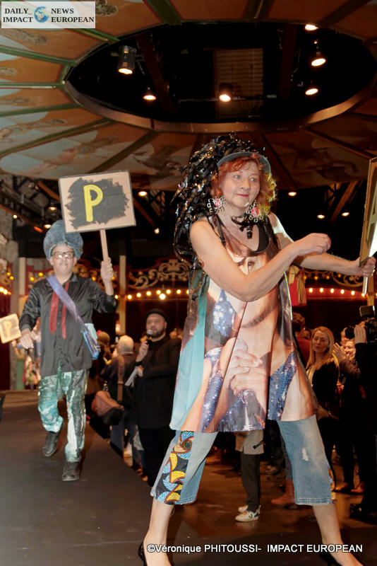 A « day models » parade, volunteers and caregivers. They wore clothes created from fabrics collected by Secours populaire with the help of two Strasbourg designers.
