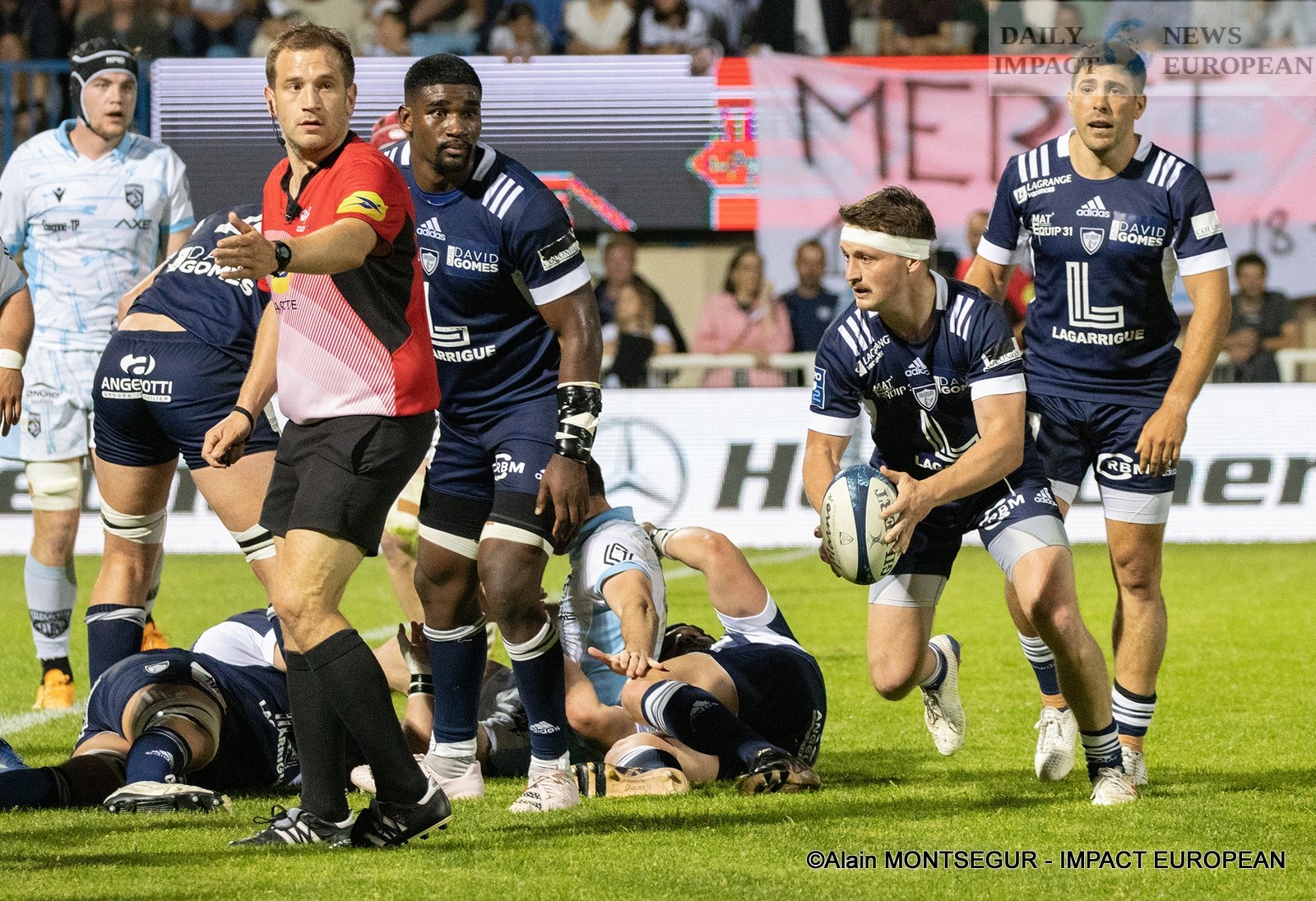 And here is the XV of Julien Sarraute and his staff for Colomiers. Grégoire Maurino is the captain, symbol of this club, is the captain for a night, was at the center of the celebrations. This one had a banner bearing his effigy, cracked smoke bombs, several ovations during and after the match and even a completely naked supporter who came against him when he left the lawn… Thirteen seasons, that’s something to celebrate!