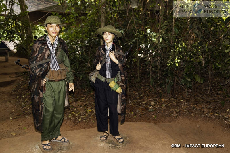 The Vietcong, communist armed forces of the South Vietnam Liberation Front aided by the USSR and China, which fought against the Republic of Vietnam and the United States during the Vietnam War, helped the peasants to dig a network of thin galleries serving semi-buried rooms and deeper cavities. At the height of the war, there were 16,000 people present in the tunnels over the 250 km spread over the 3 levels. The first is 3 m from the ground, the second 6 m and the deepest 12 m.