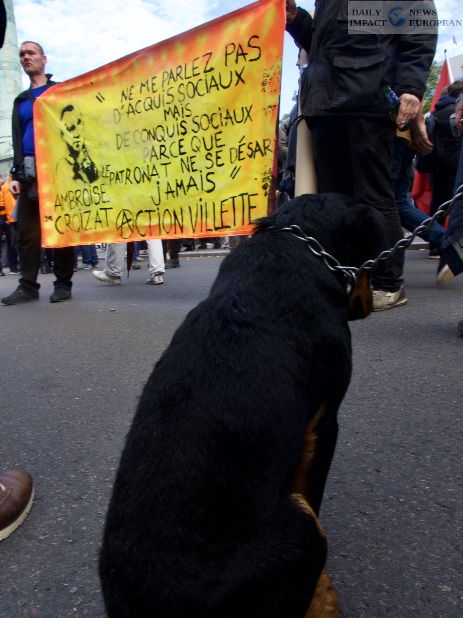 Some signs spun the culinary metaphor: « Macron, give me your fridge », « let’s eat the rich », « metro, work, pasta in water, cellar »… In song, to the tune of « Voyage, trip », some thundered « Work, work, beyond retirement age ».