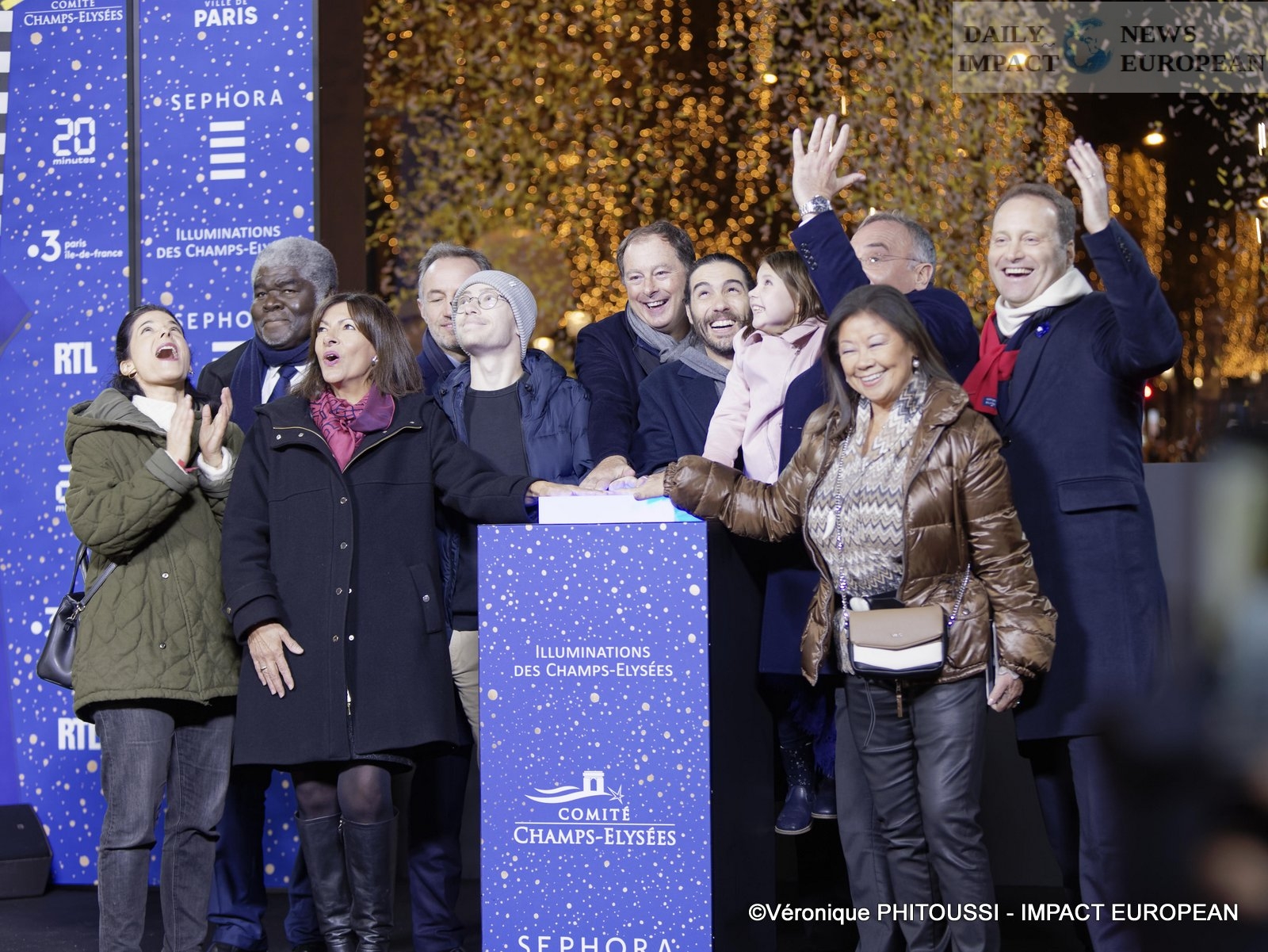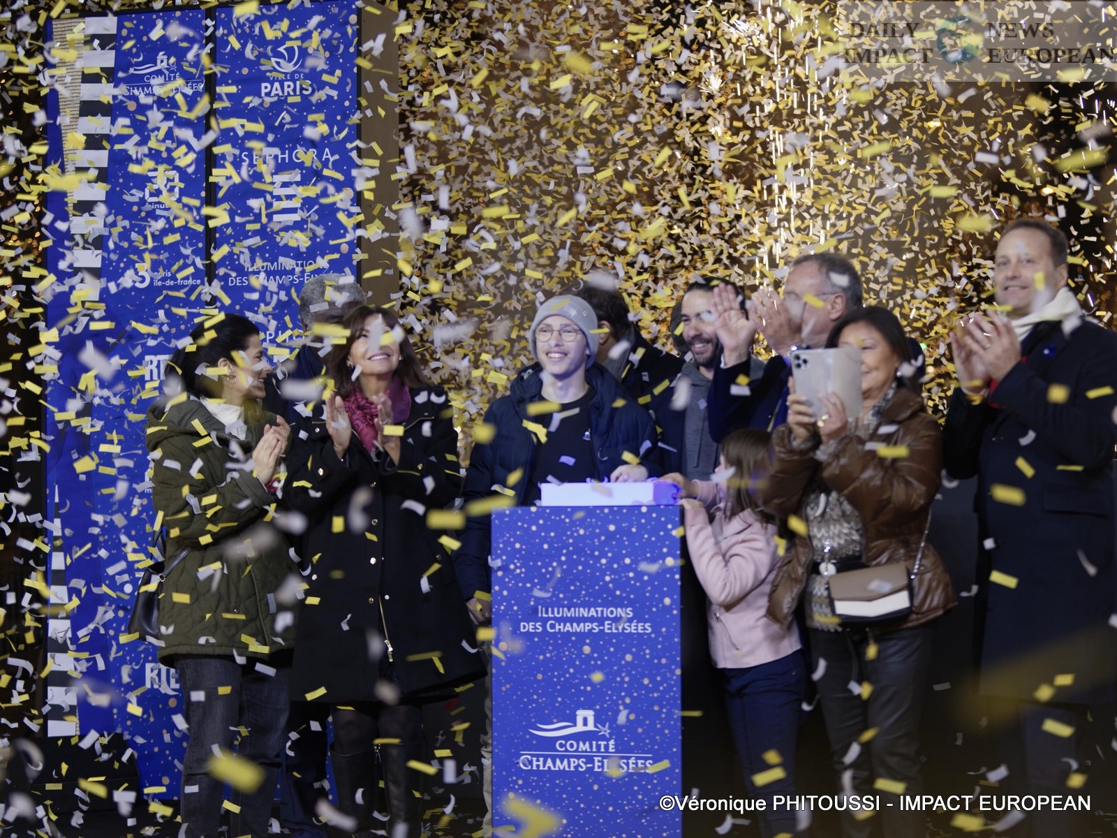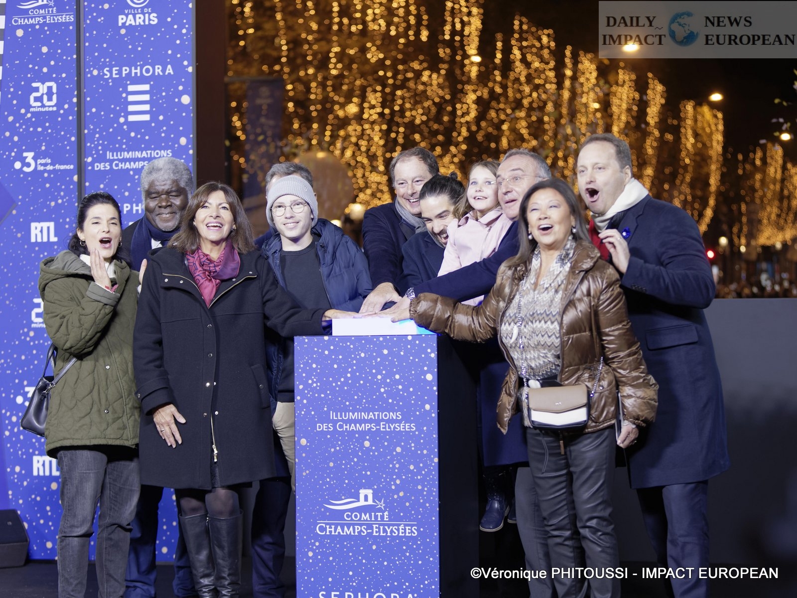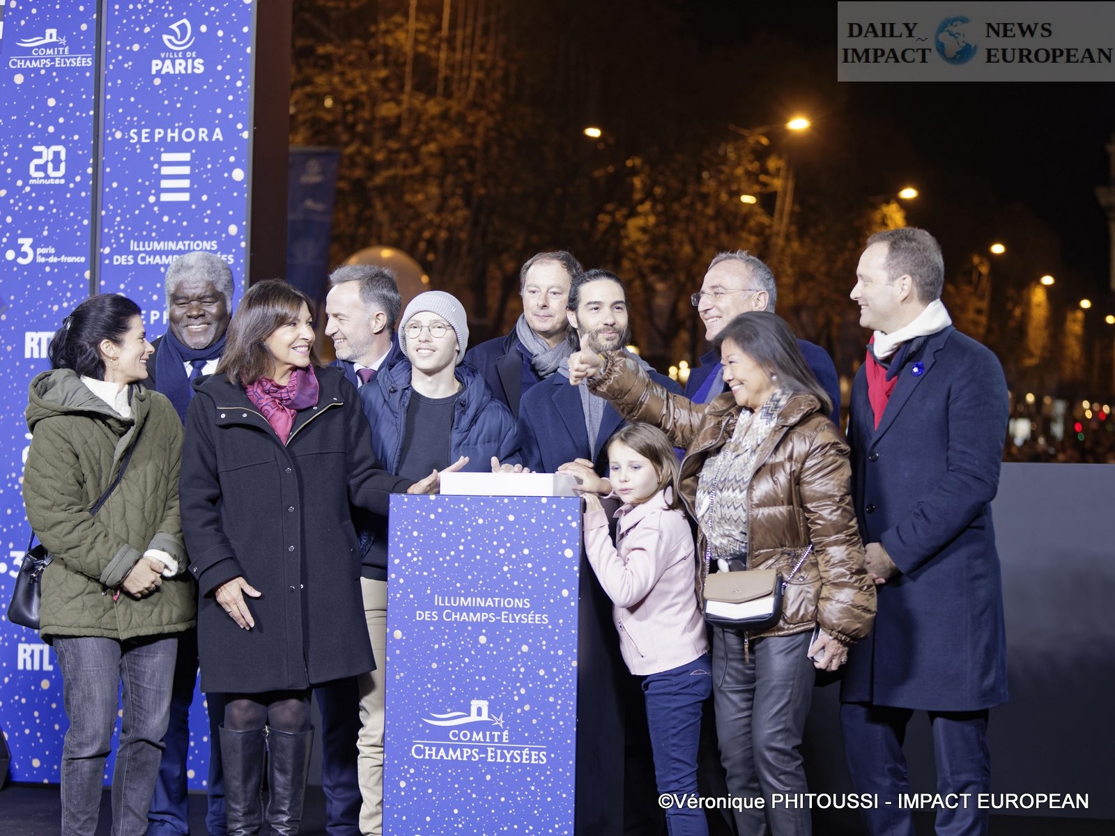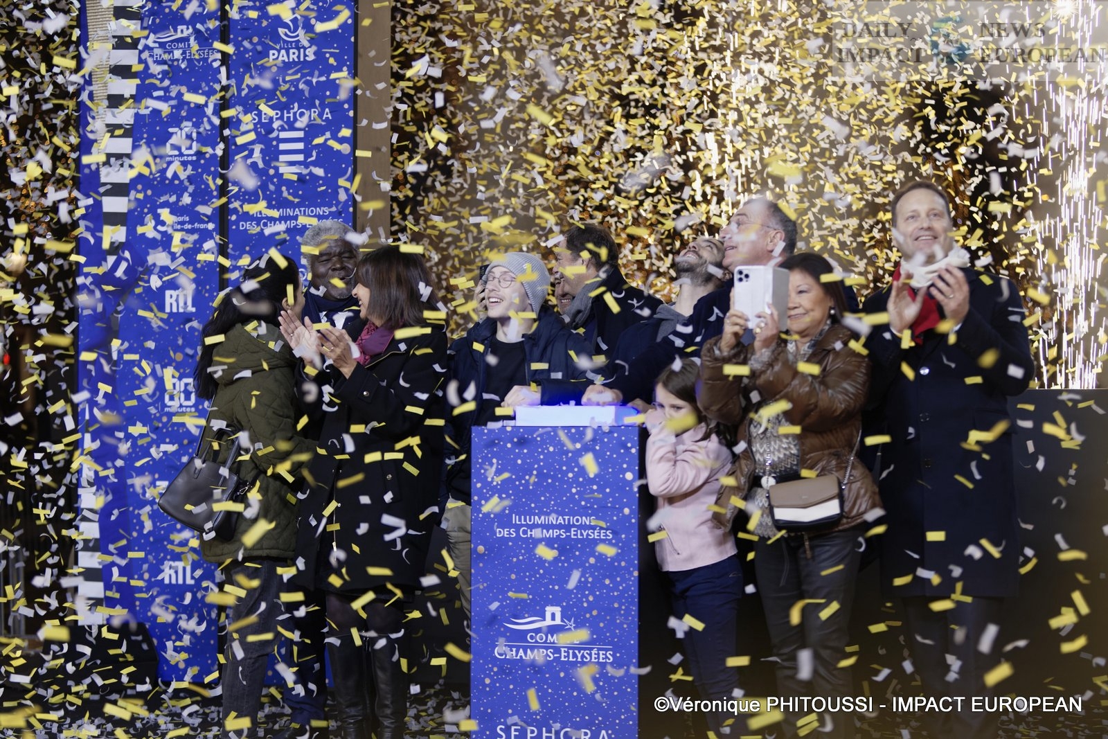 The inauguration of the illuminations of the Avenue des Champs-Elysées was held in the presence of Anne Hidalgo, mayor of Paris, Jeanne d’Hauteserre, mayor of the 8th arrondissement, Marc-Antoine Jamet, president of the Champs-Elysées committee. Elysées and Tahar Rahim, sponsor of this inauguration of the Illuminations of the Avenue des Champs-Élysées and two children of the association « Petits Princes » this Sunday evening.