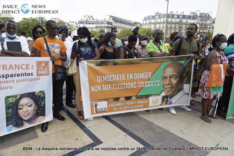 In Paris, the Ivorian diaspora of all tendencies met on Saturday, August 8 and 15 on the Parvis des droits de l’homme, at the place du Trocadéro to demand respect for the Constitution and say no to a third unconstitutional term of the President.