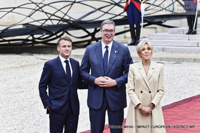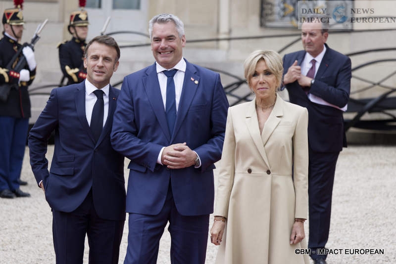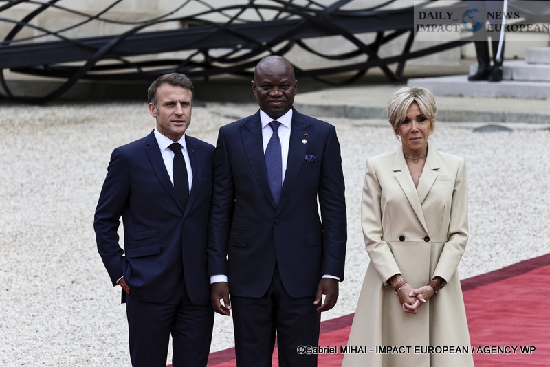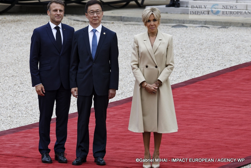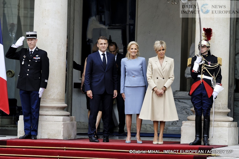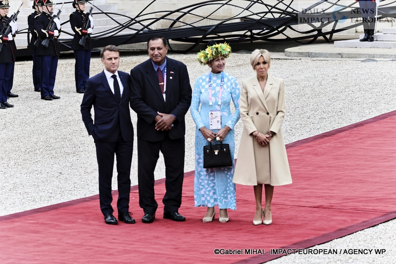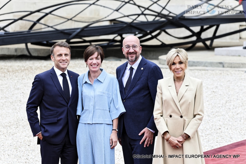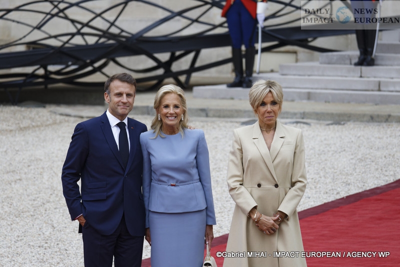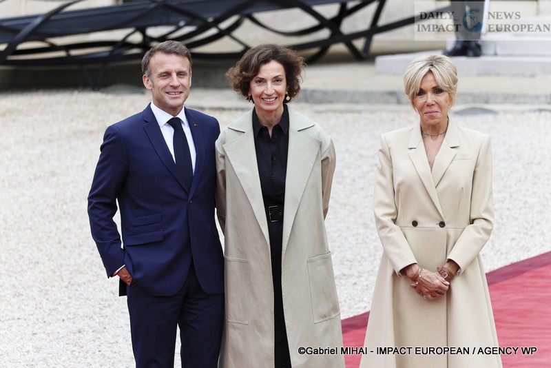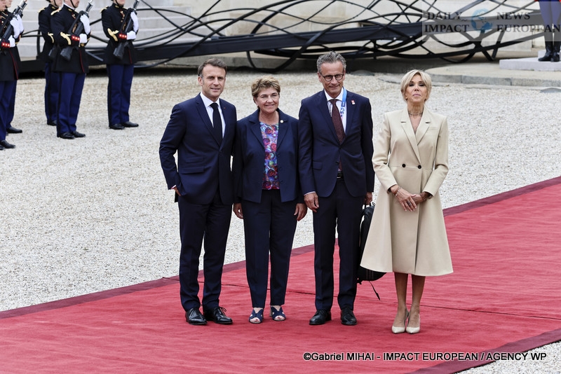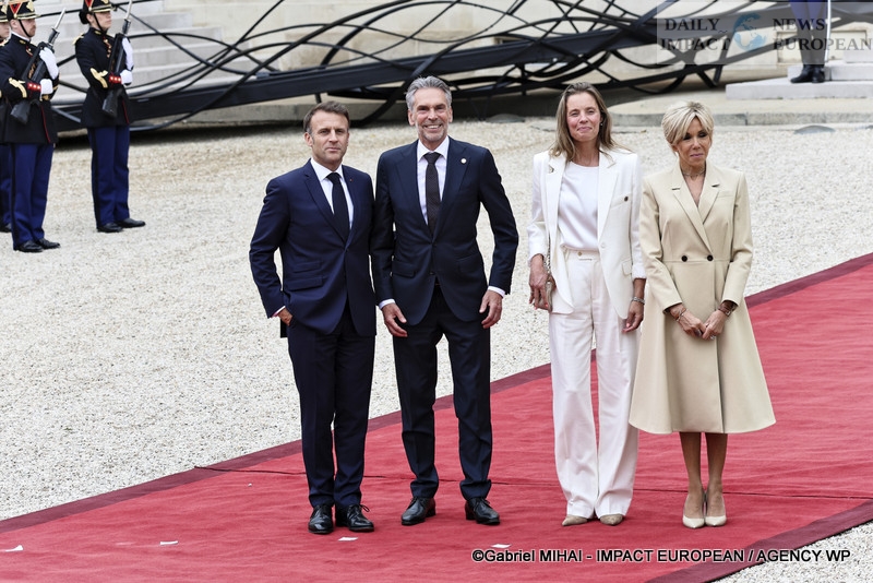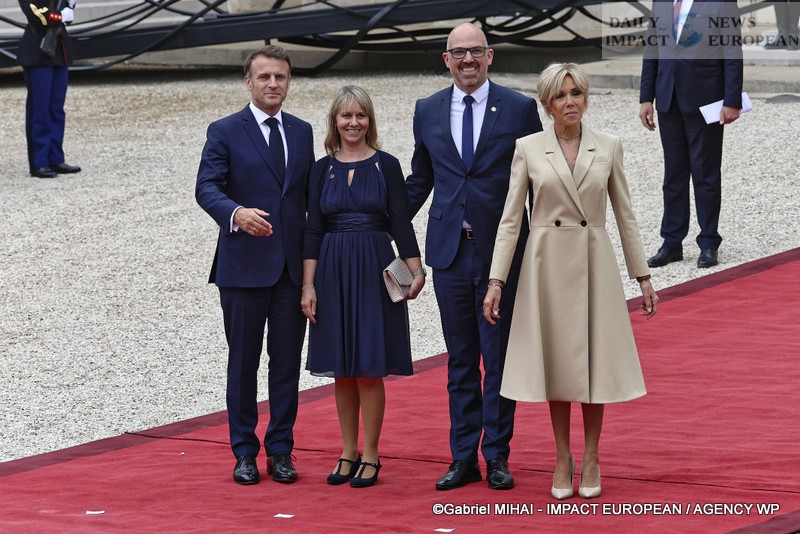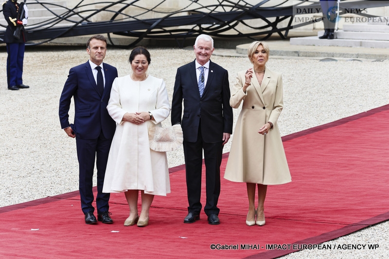 Emmanuel Macron and his wife Brigitte greeted their guests as well as several leaders of international organizations, on the red carpet rolled out in the main courtyard of the palace, ahead of the opening ceremony.