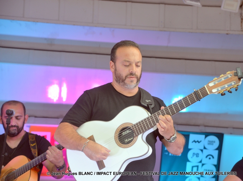 Among the guests, we could applaud the trio Rosenberg who also performed during the Marciac Festival last July, the Krief family, the Rapetous, Angelo and Raangy Debarre, Steven Reinhardt quartet whose dad was the cousin of the great Django Reinhardt (Steven will be performing at the Chope des Puces from August 31st), Paquito and Sandro Lorier (after making a « beef » as a family, they have joined the group « Gypsies Los Amigos » with, on the white guitar, Christophe Baliardo, called « Kéma » (one of the grandsons of Manitas de Plata) and a chorister of Kendji Girac).