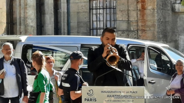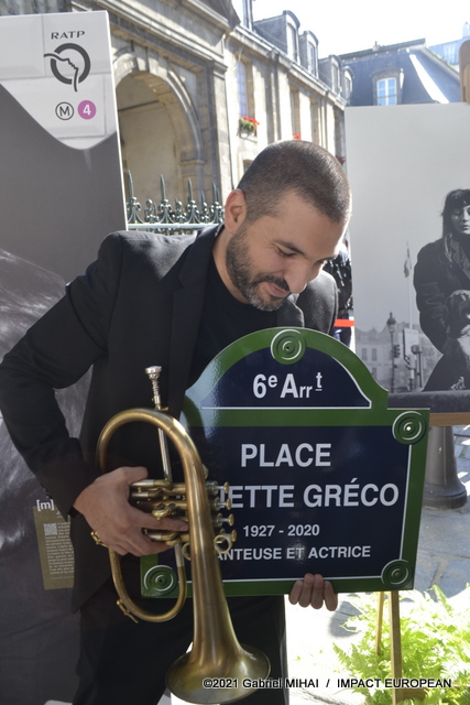 Ibrahim Maalouf performed at the trumpet « la Javanaise » a tribute under the sun, in the presence of the mayor (PS) of Paris Anne Hidalgo and his deputies, the mayor (DVD) of the 6th arrondissement Jean-Pierre Lecoq, the deputy ( LREM) Gilles Le Gendre and family members of the singer and actress.