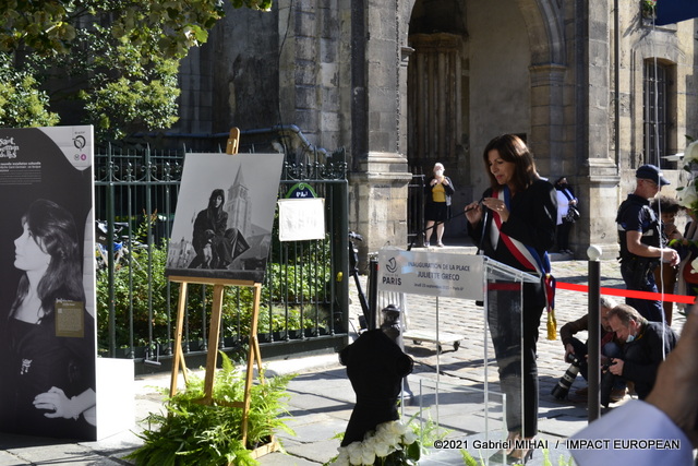 Anne Hidalgo, thanked Jean-Pierre Lecoq for his visit, saluted the work of his assistants, addressed Julie-Amour Rossini. « We are women and we are a lot, I believe to have been inspired by Juliette Gréco », she begins before praising the « free, sensitive and rebellious » character of the interpreter. The city councilor tells how the artist escaped deportation thanks to her young age, after being arrested by the Gestapo with her mother and sister, resistance fighters who returned from Ravensbrück after the Liberation in 1945.