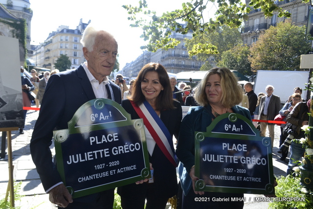 On September 23, 2021, the City of Paris inaugurated a Place Juliette Gréco, located in part of Place Saint-Germain-des-Prés, in the heart of the district whose spirit the artist has long embodied.
