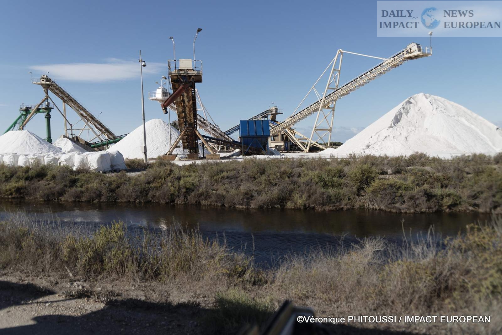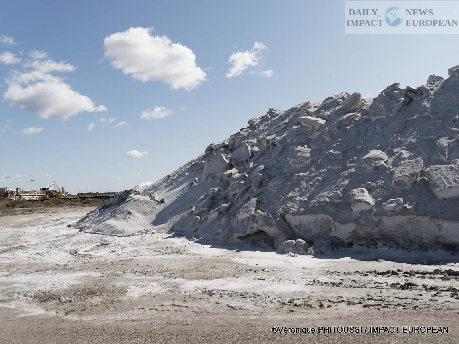 The mechanically harvested salt is piled up in glistening heaps called « Camelles » before being packaged for food use.