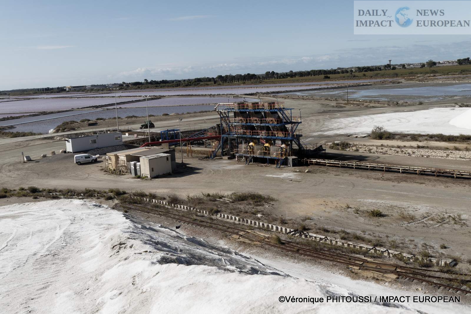 The mechanically harvested salt is piled up in glistening heaps called « Camelles » before being packaged for food use.