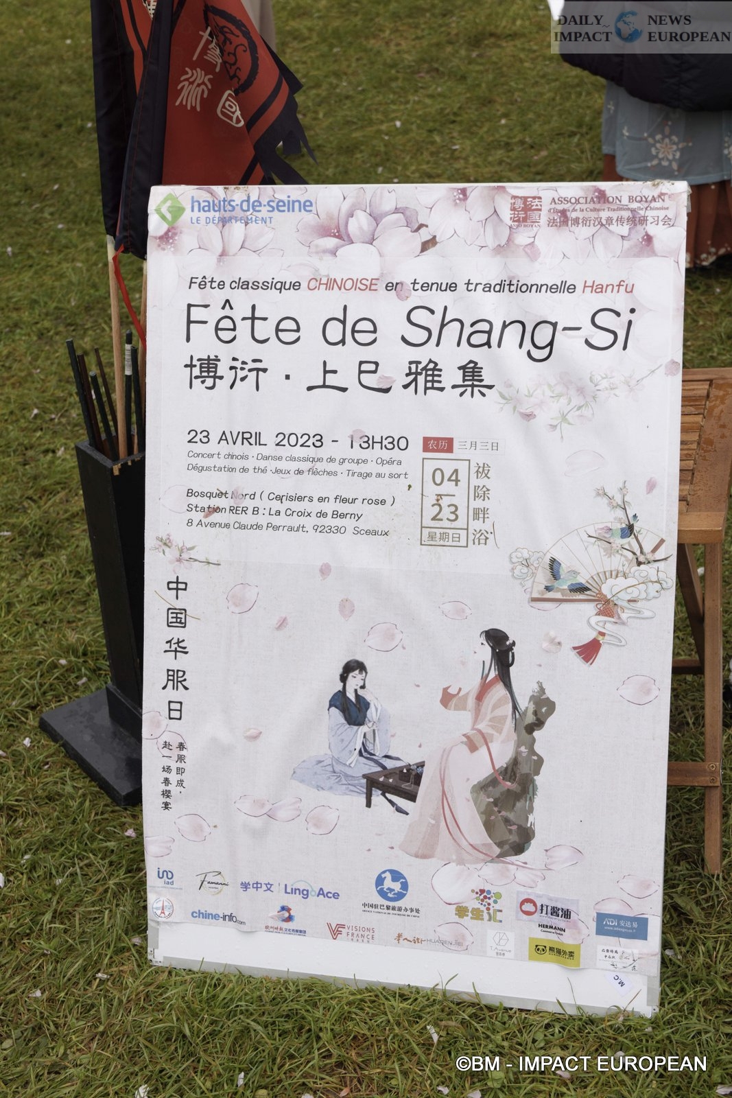 Cette fête fut d’abord célébrée par toutes les minorités et l’ethnie Han. De nos jours, seuls les minorités Zhuang, Buyi, Dong et quelques familles Han vivant dans des endroits reculés continuent à la fêter. Pour ces derniers, la tradition n’a pas beaucoup changé, ils fêtent Shangsi en allant au bord de l’eau pour pique-niquer, boire du vin jaune, cueillir des orchidées et se laver dans l’eau de la rivière afin de se purifier et retirer le mauvais oeil. Très pratiquée au Japon, elle porte le nom d’Hira Matsuri.